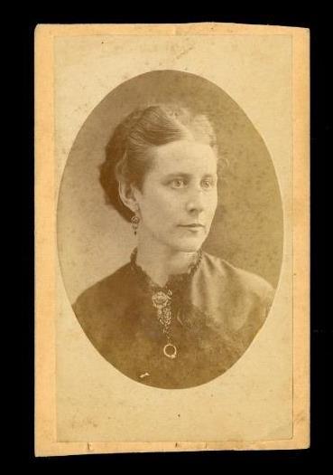 Vintage CDV Photo Early JM Elliott Columbus Ohio Middle Age Lady in Mourning - wearing her wedding ring on a chain around her neck. Measures 4" by 2.5". No smoke or pet odor.