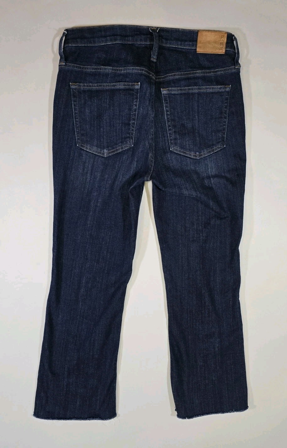 J. Crew 9" Demi Boot Crop Jeans Sz 28 Dark Blue Stretch Mid Rise Raw Seams 30x26