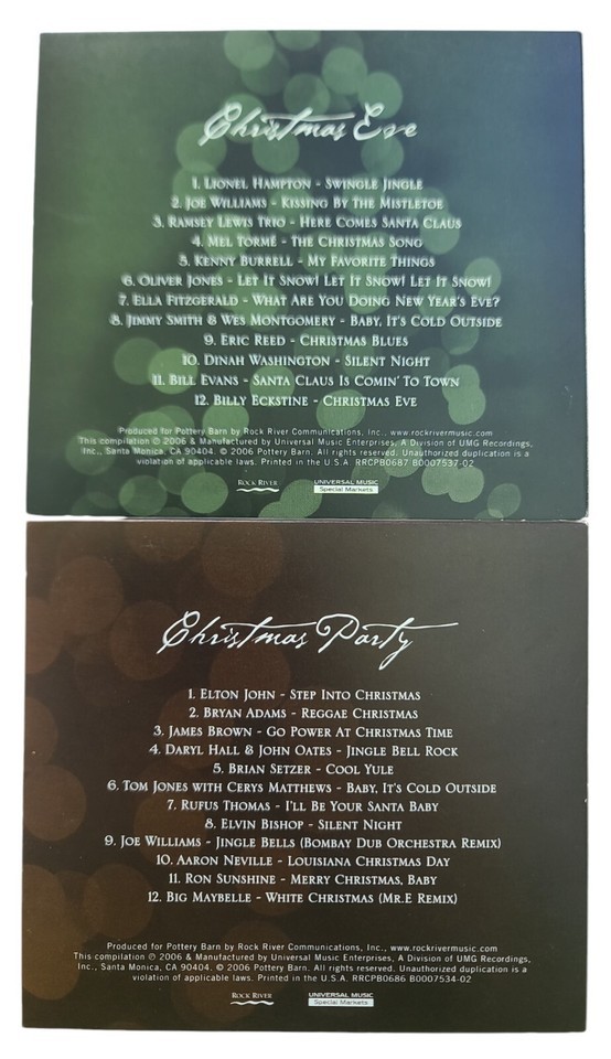Pottery Barn Christmas Party & Christmas Eve 2ea CD SET Holiday Festive Music