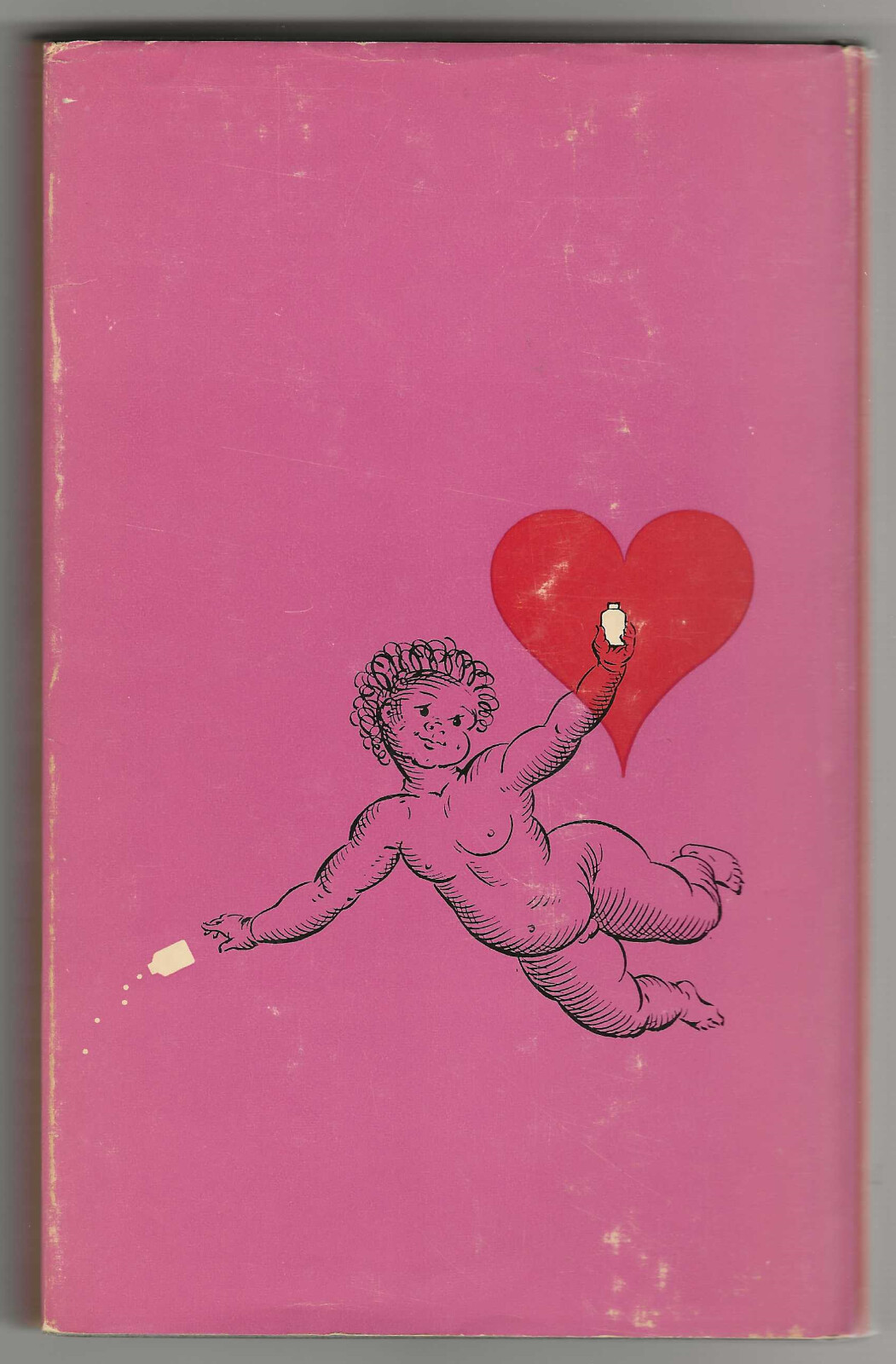 Tight in near fine smoke-gray linen-boards with bright violet cupid dropping a pill bottle art to the front cover and with violet titles to the spine, upper page edges violet; in a near fine dust jacket with a depiction of a red heart and a cupid holding and dropping pills by Robert Hallock to the front and rear panels, light rubbing to the rear panel, slight fading to the spine panel and nicks to the upper spine edge; original printed $2.95 price and date code 466 still intact to the front inner flap.