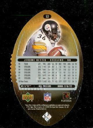 2003 Upper Deck O Standing Die Cut #53 Jerome Bettis Steelers Football. Raw and Ungraded. No smoke or pet odor.