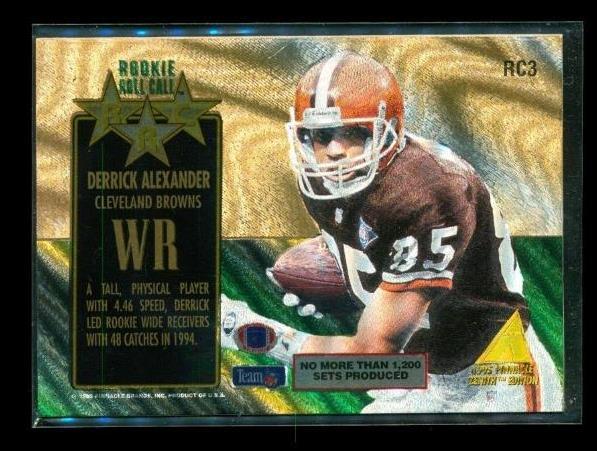 1995 Pinnacle Zenith Rookie Roll Call /1200 Derrick Alexander RC3 Football Card. Raw and Ungraded. No smoke or pet odor.