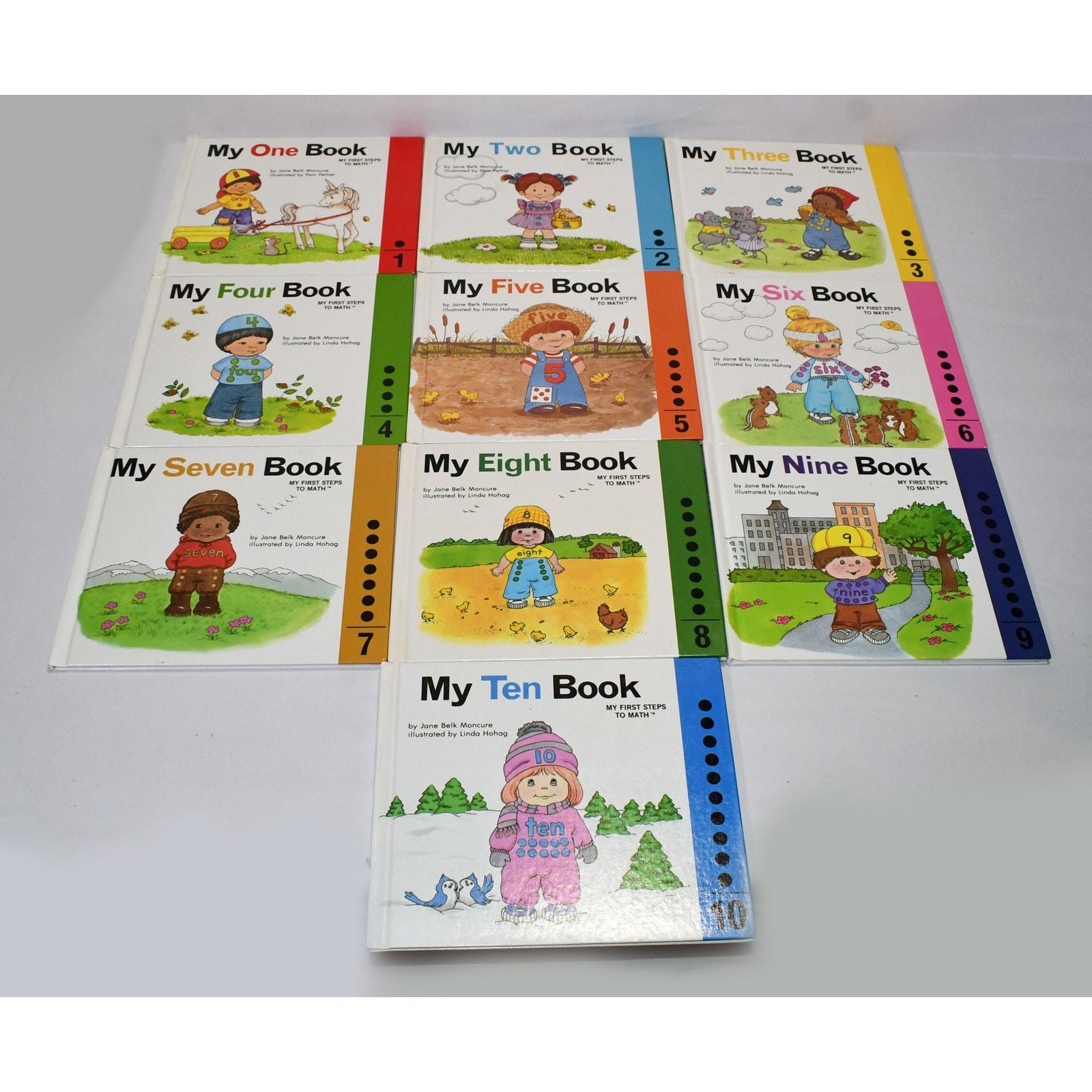 For sale is this set of 10 "My First Steps To Math" books set. You'll get books 1 - 10. These books were written by Jane Belk Moncure and appear to be in great condition for their age.