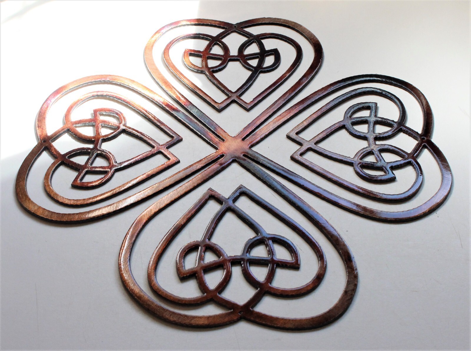 Celtic Shamrock Metal Wall Art Decor 12" x 11" Copper and Bronzed Plated