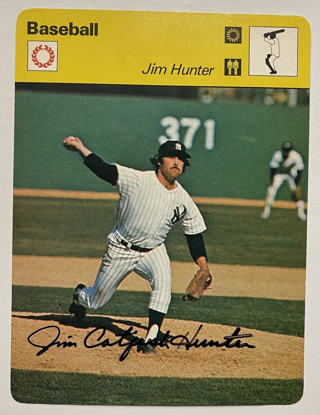 Jim "Catfish" Hunter (d. 1999) Autographed Vintage 1977 Sportscaster Card