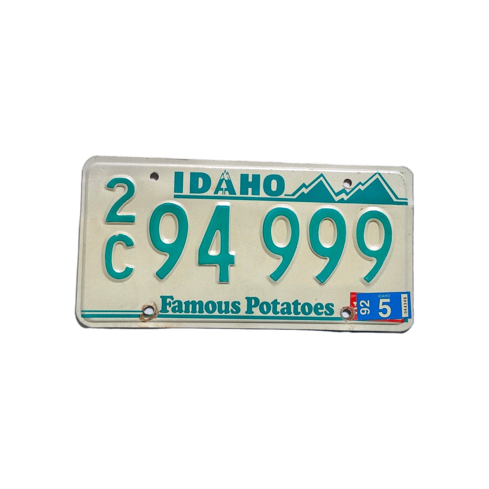 Idaho License Plate 1992 Greenie Famous Potatoes 2C 94999 Canyon County Man Cave