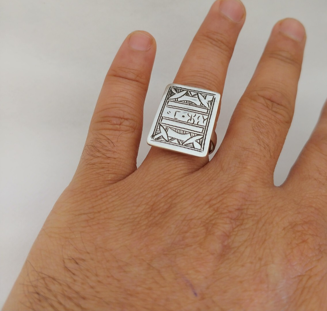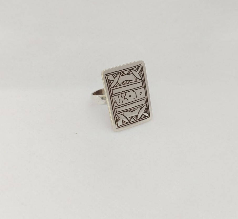 Amazigh Ring Silver Tuareg Moroccan Handmade Artisanal Berber Engraved Rings VTG