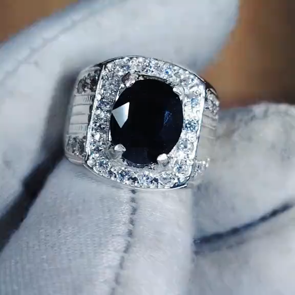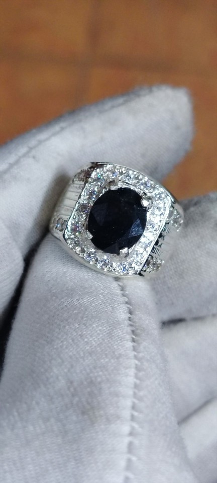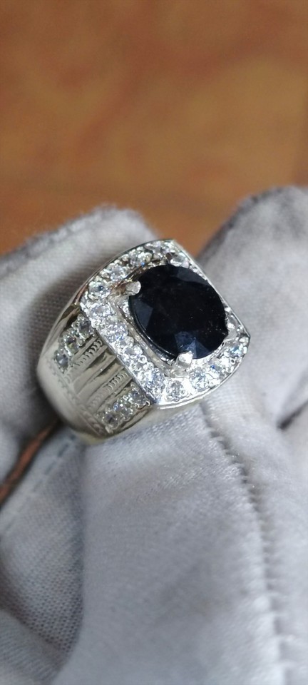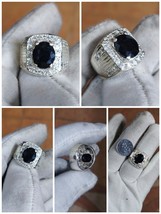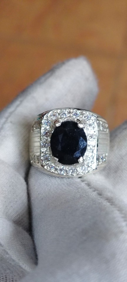 Natural Deep Blue Sapphire Africa 5.2 Carat silver 925 Handmade ring