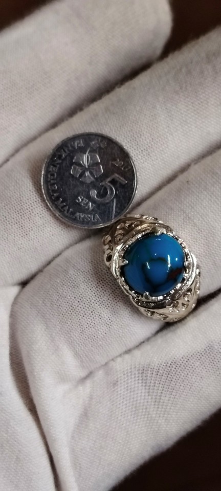 The original stone from Egypt turquoise blue is the right choice for those of you who are looking for high quality stone. This stone is guaranteed to be original and comes from Egypt, which is known as the center of producing high quality gemstones in the world. The surface grade of this stone means that it has a high grade and unique , making it a special and perfect choice. The silver band on this stone gives it an attractive and classic design, making this stone suitable for wearing on various occasions. The size of this stone is 19asia/9.5 US, but it can be resized according to the size desired by the buyer. This allows the buyer to choose the size that fits their finger, making this stone more comfortable to wear. Postage is provided for the delivery of this product, making it easier for buyers to receive the product easily and safely. Purchases can be made through, allowing buyers to purchase this product easily and safely. Thank you for your support. Get this high qualityfuel grade genuine stone Firus Egypt now to add to your gemstone collection. Any further requests for video direct message me. Thanks for your support ?