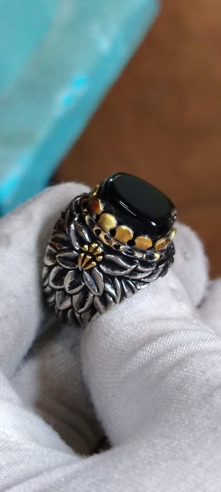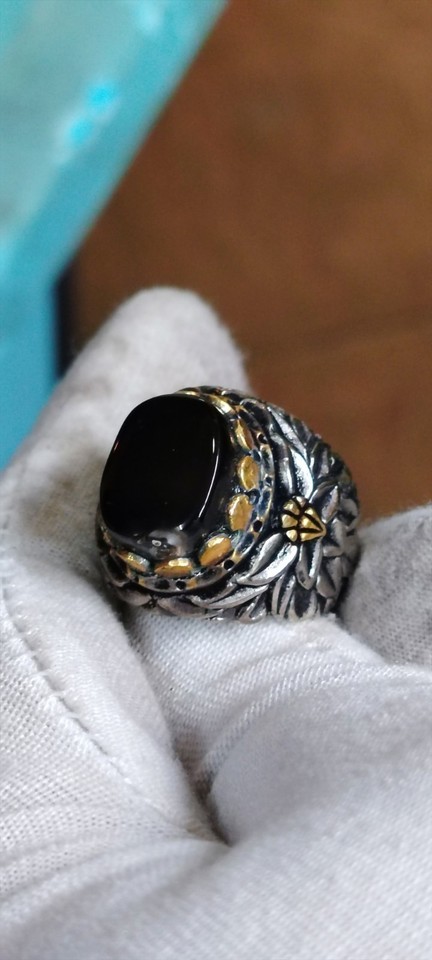 Natural Black Yemeni Agate With handmade Turkish Silver Sterling Ring
