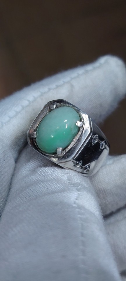 Natural Jade Burma 5.4 carat Silver handmade Ring Solid