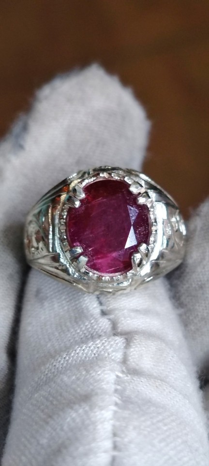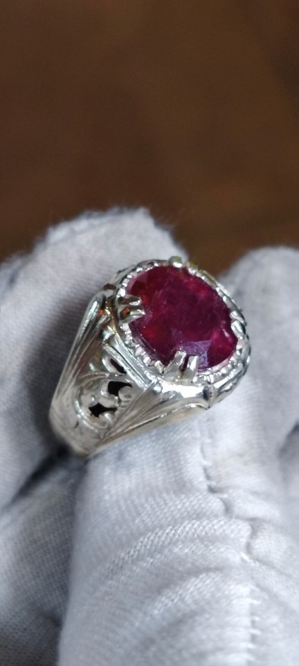Natural Untreated Mozambique Rubylite tourmaline 5.23 Carat Silver 925 Ring