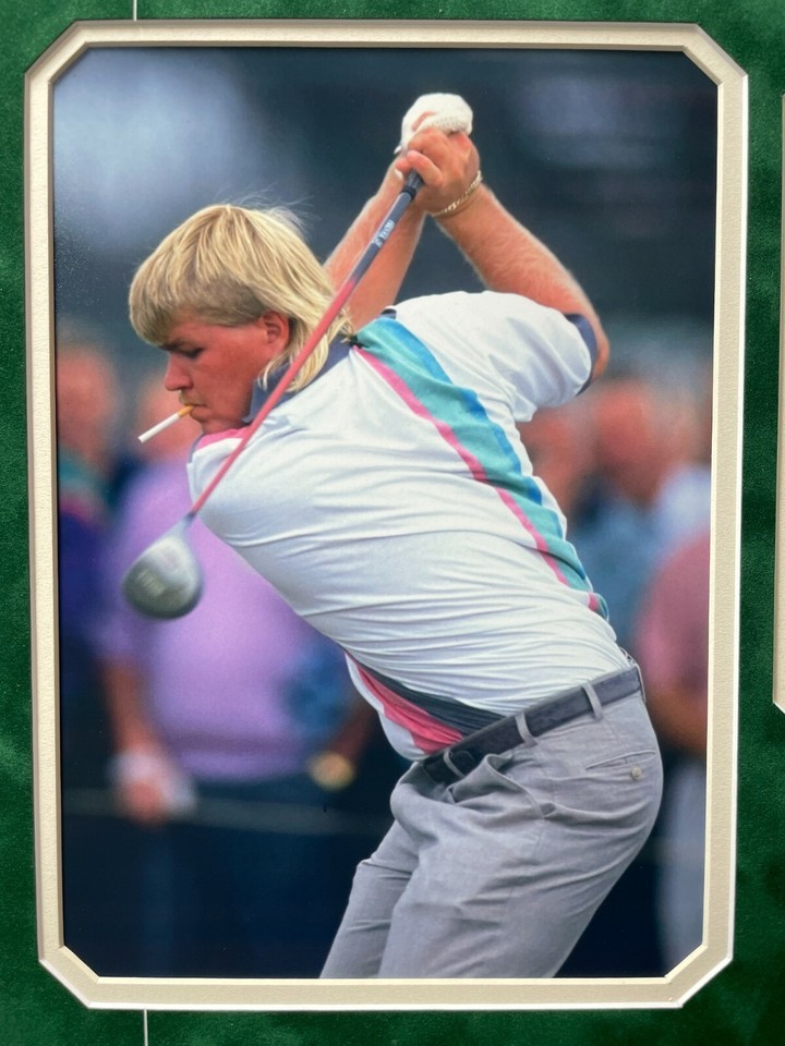 Golf Fans! This item is your calling featuring an autographed personal worn / game played glove from John Daly!! It's rare that you find actual played golf equipment from big name golf pros as rarely do you see them offer great memorabilia like this! This glove was acquired directly from Mr. Daly as well as other gloves and signatures we have been getting from him directly for the past year or so. We include our Letter of Authenticity to guarantee it's the real thing you are buying and an authenticity guarantee from a big memorabilia brand in the industry. Included in this awesome framed collage is an iconic photo John Daly being John Daly on the golf course with a cigarette in his mouth! This photo was taken of "Wild Thing" at the 1992 British Open, cigarette in his mouth and all.