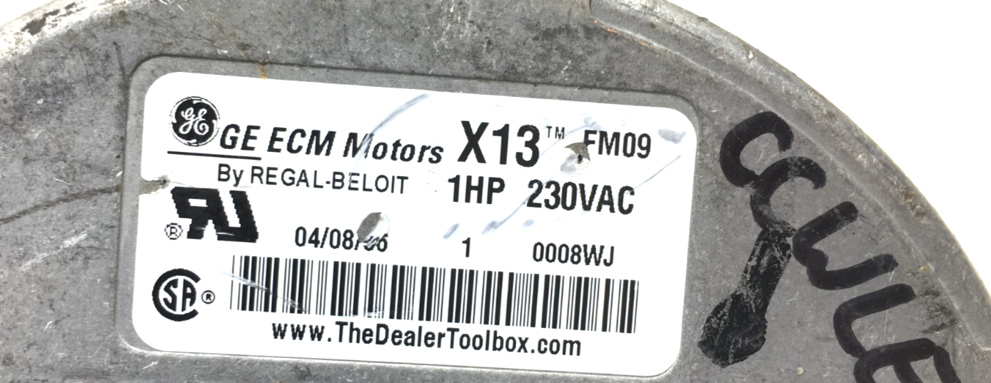 This is GE ECM X13 FM09 Blower Motor's Module 1HP 230VAC programmed CCW Lead End rotation and wired for D672366G26 MOT12290 used part. Motor not included, for sale is module only.