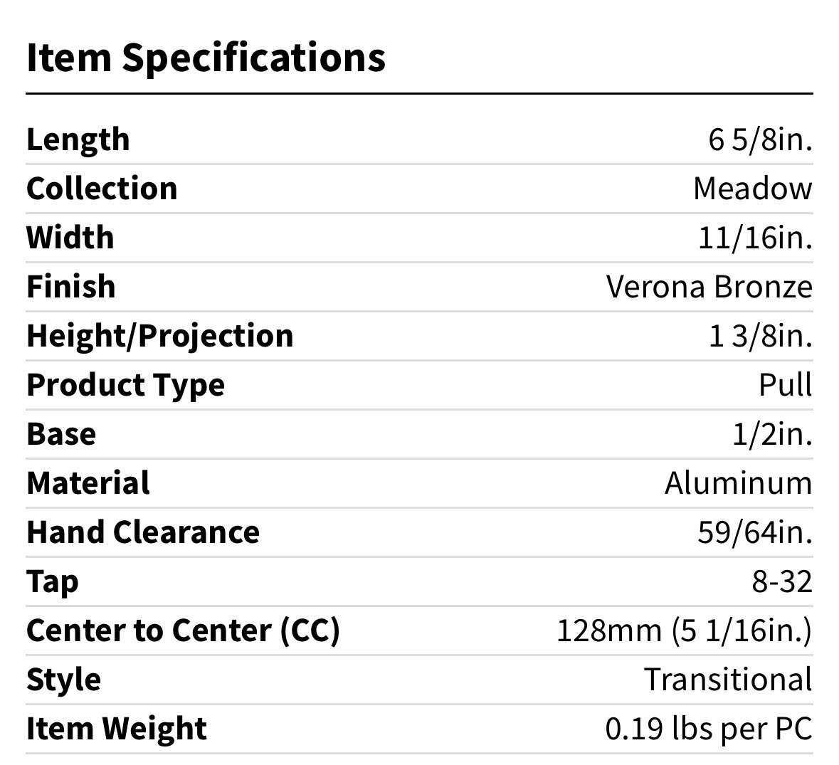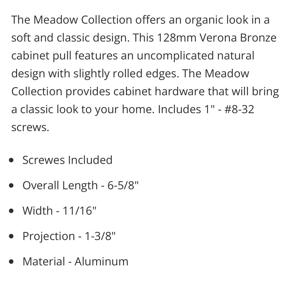 Lot of 5 Berenson Meadow 128mm center to center, Verona Bronze, cabinet handle, pulls.