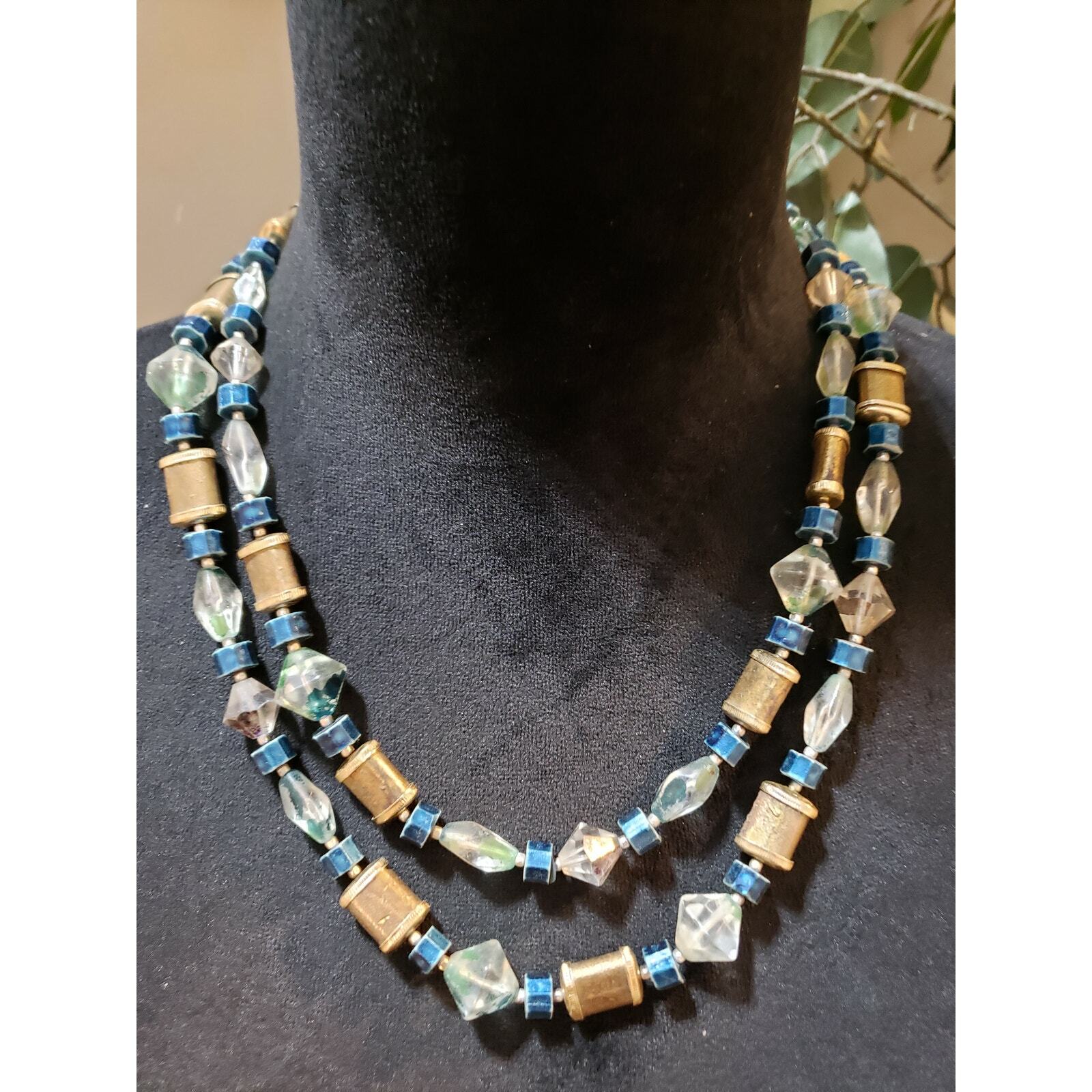 Women Elegant Gold Tone 2 Strand Baroque Pearl Crystal Asymmetric Cubes Necklace.