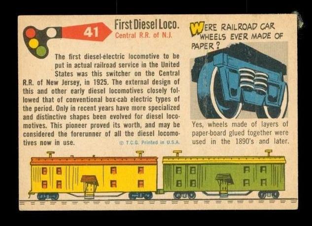 1955 Rails Sails TOPPS Trading Card #41 First Diesel Locomotive Central NJ