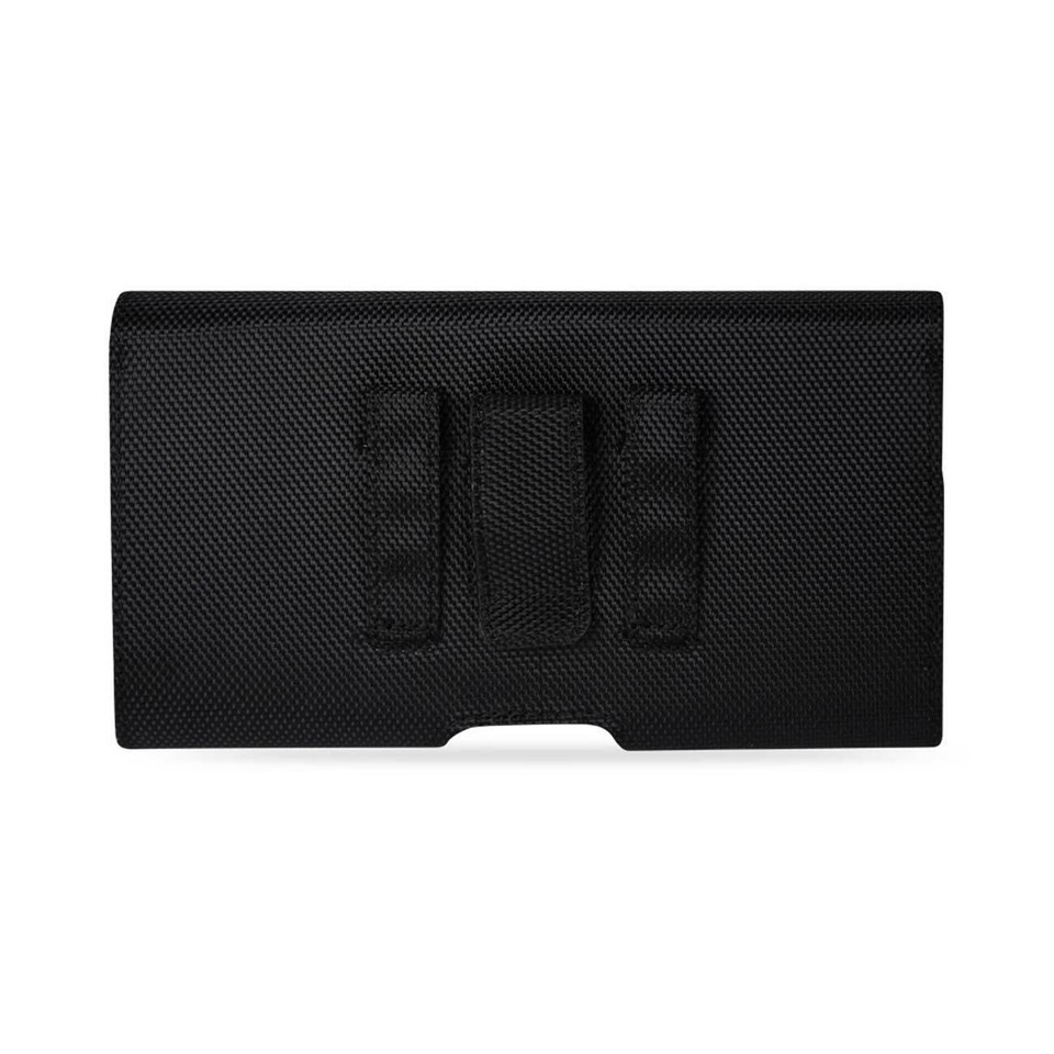 An iPhone 11 Pro Max: 6.6" Nylon Horizontal pouch case with a perfect fit that offers you protection, style and easy use. This premium Nylon case is made from top quality PU Leather and has a soft interior that protects your smartphone from scratches and scrapes. It consists of Nylon and uses Magnetic clasps as fasteners to safely Secure your phone provide easy access at the same time. It also includes a belt clip Plus belt slots to offer double protection.
