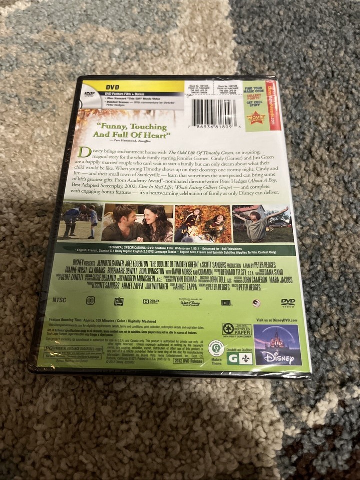 Experience the heartwarming tale of "The Odd Life of Timothy Green" on DVD. This family-friendly film, rated PG, follows the story of a young boy named Timothy who has a unique life that takes him on a journey. Released in 2012 by Walt Disney Video, this drama genre movie is a must-have for any Disney fan.