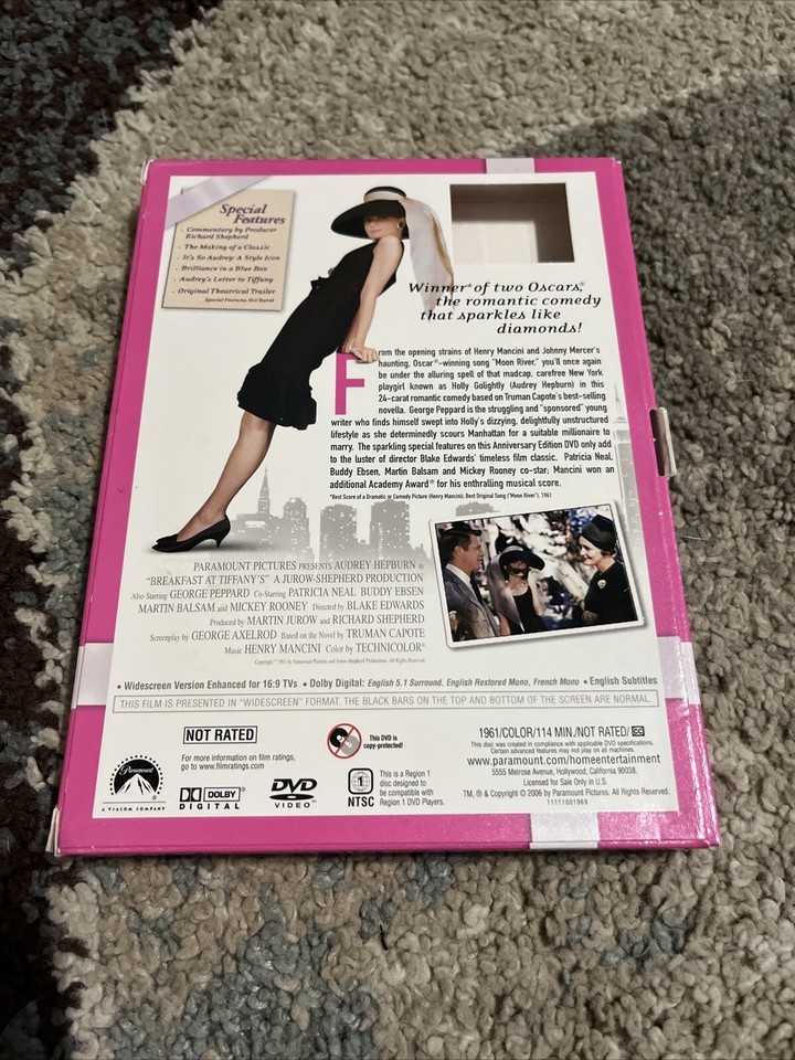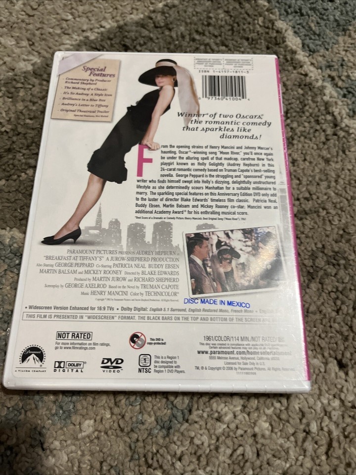 Released in 2006, this DVD is in the format of a disc and is rated NR. The movie title is "Breakfast at Tiffany's" and it falls under the categories of "Movies TV" and "DVDs Blu-ray Discs". This edition is a perfect gift for anyone who loves classic movies and wants to add a touch of elegance to their collection.