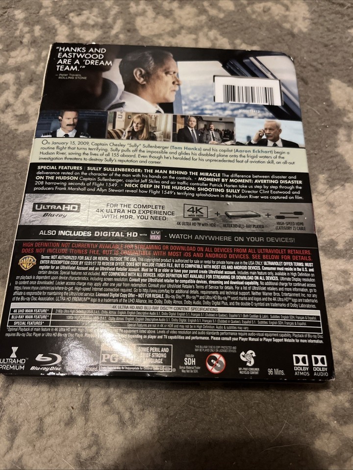 Sully (Ultra HD, 2016) Tom Hanks 4K Slip Cover True Story American Hero Flick