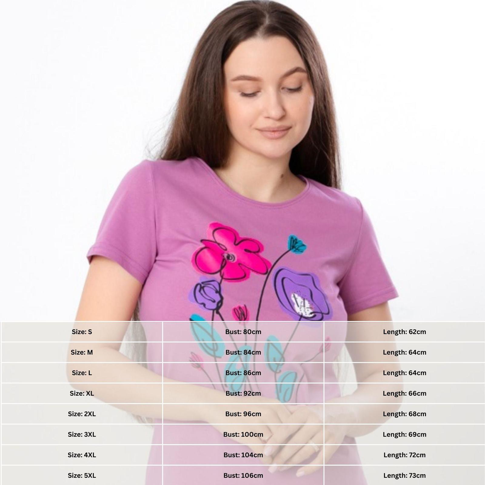The women's short-sleeve T-shirt is an excellent choice for modern women. Made from high-quality cotton, it ensures comfort and ease for everyday wear. The classic cut and stylish design make it easy to pair with various types of clothing: jeans, skirts, or shorts. The round neckline adds elegance, and the variety of colors and sizes helps you find the perfect fit for any style. It is recommended to wash at a temperature no higher than 30C to maintain its shape and color.