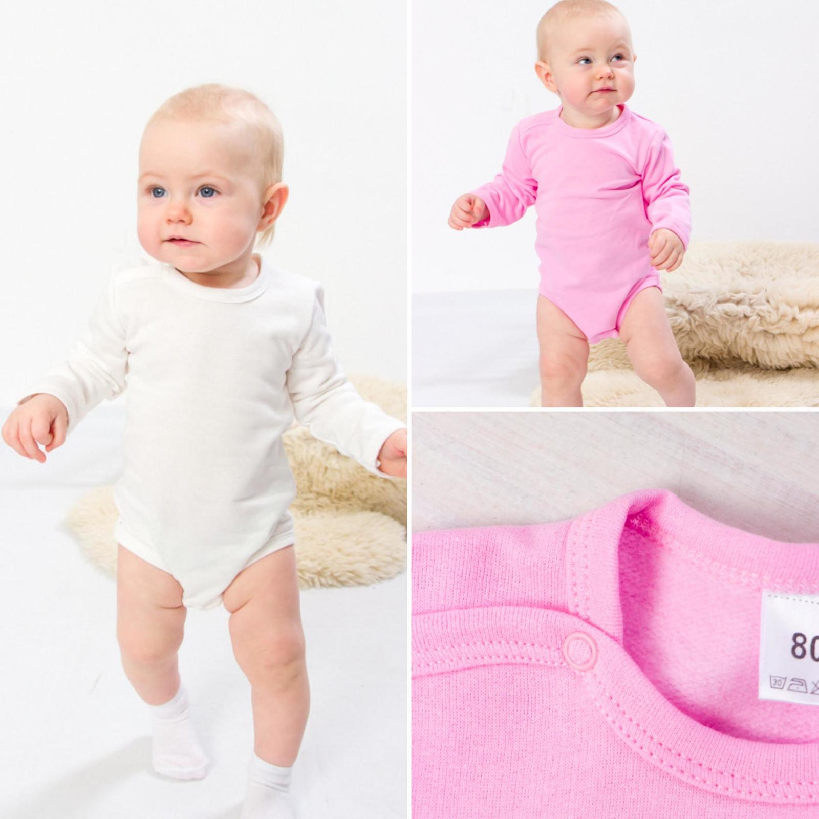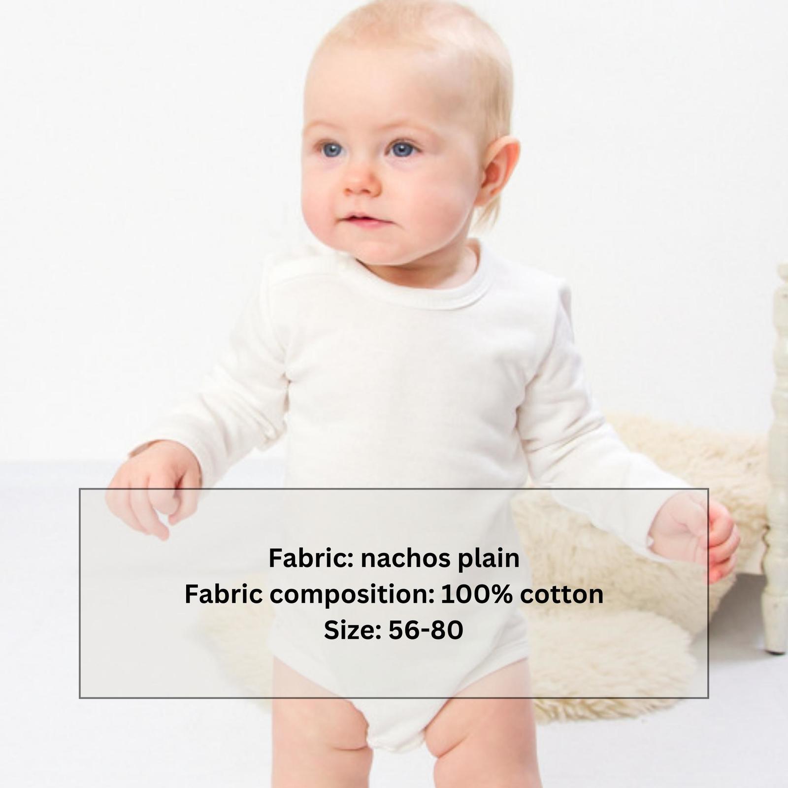 The infant bodysuit for girls with long sleeves is the perfect solution for cooler days. Made from soft cotton, this bodysuit provides comfort and warmth. Long sleeves and a convenient cut allow freedom of movement, while practical snap buttons on the shoulders make dressing easier. This bodysuit is available in various colors, making it easy to mix and match with other items in your child's wardrobe. Choose a stylish and practical bodysuit for your little fashionista so she always looks great and feels comfortable!