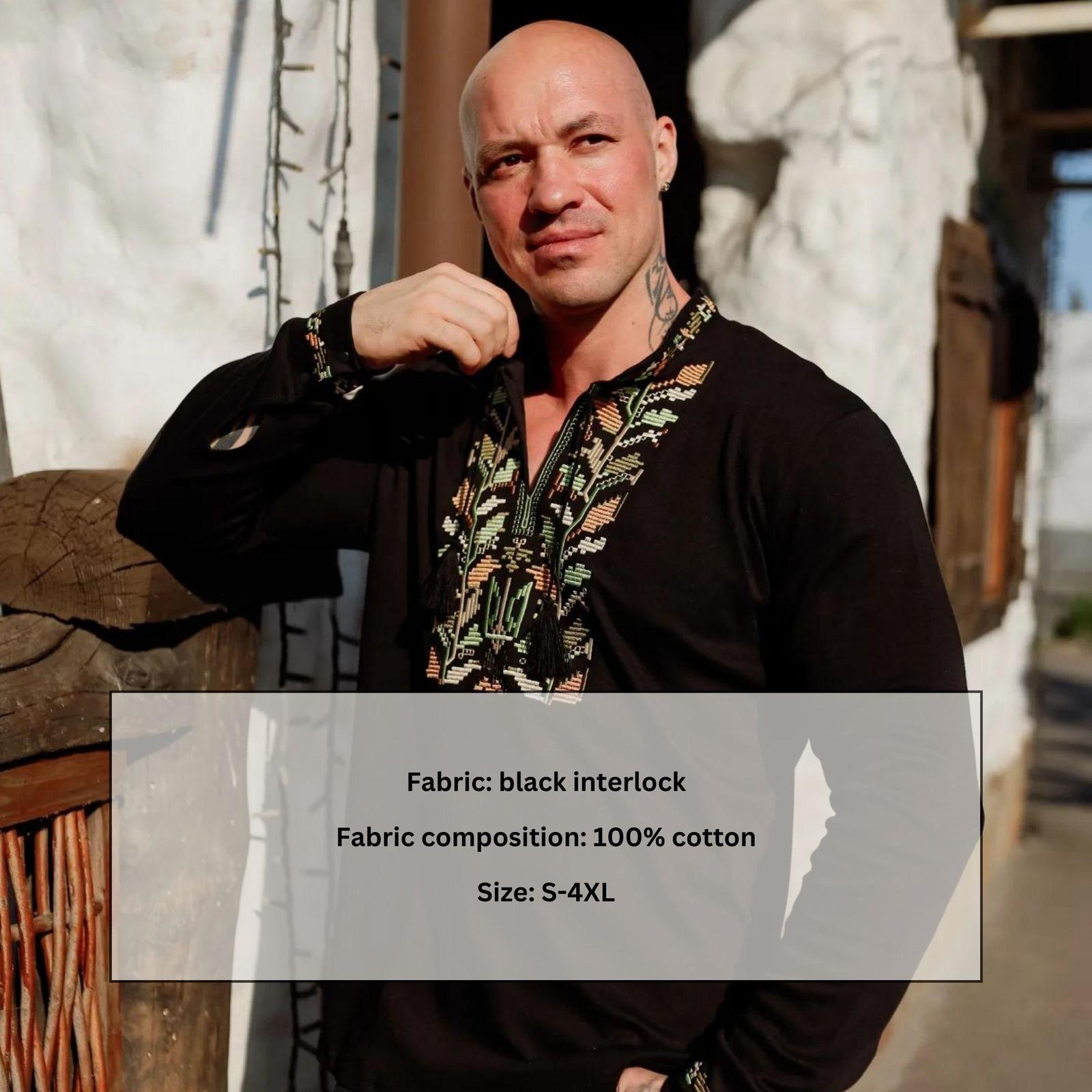 Men’s Vyshyvanka Shirt – Black Interlock & Rich Embroidery, Any season, Nosi...