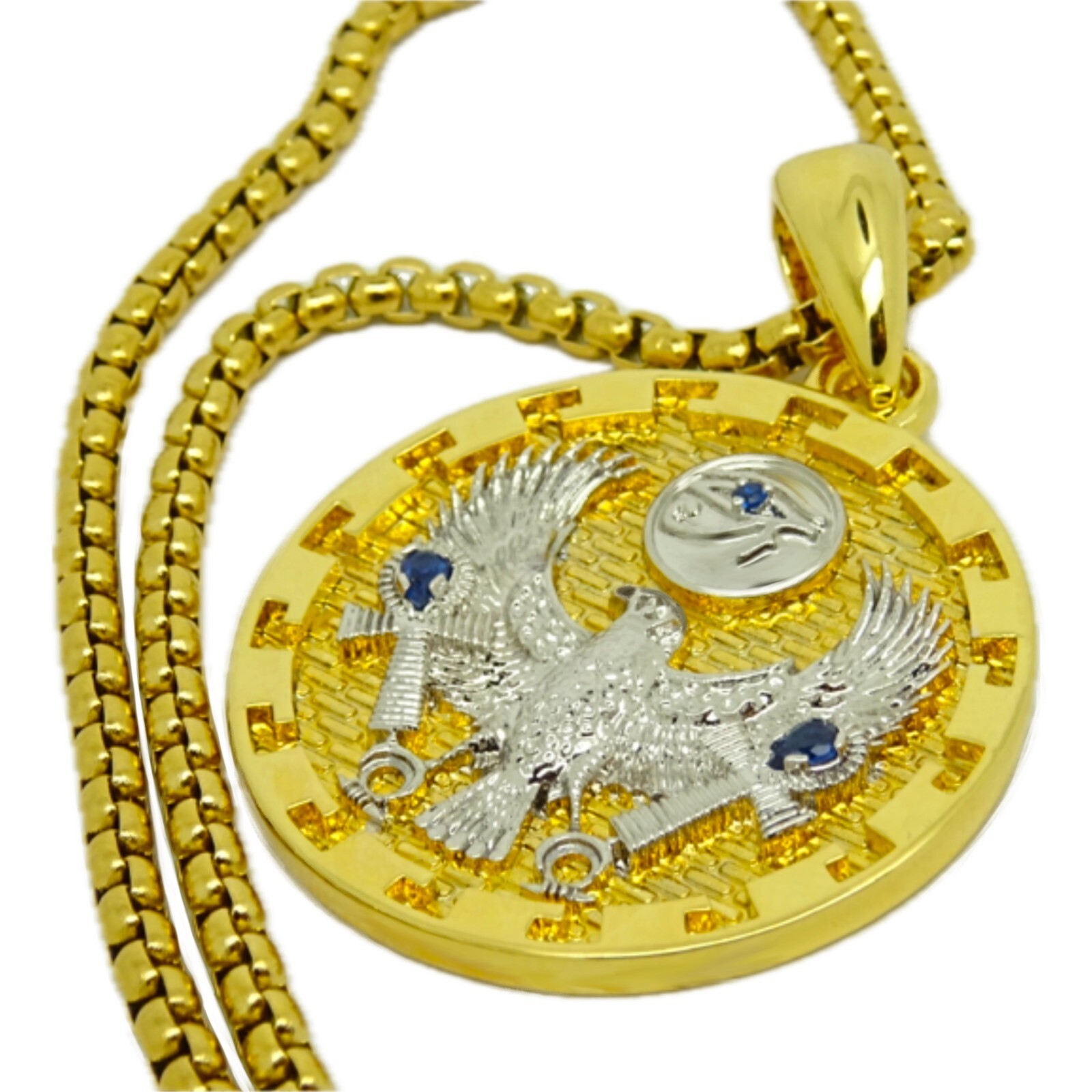 Egyptian Falcon Pendant with Chain Eye of Horus Ankh Cross Gold Plated Necklace