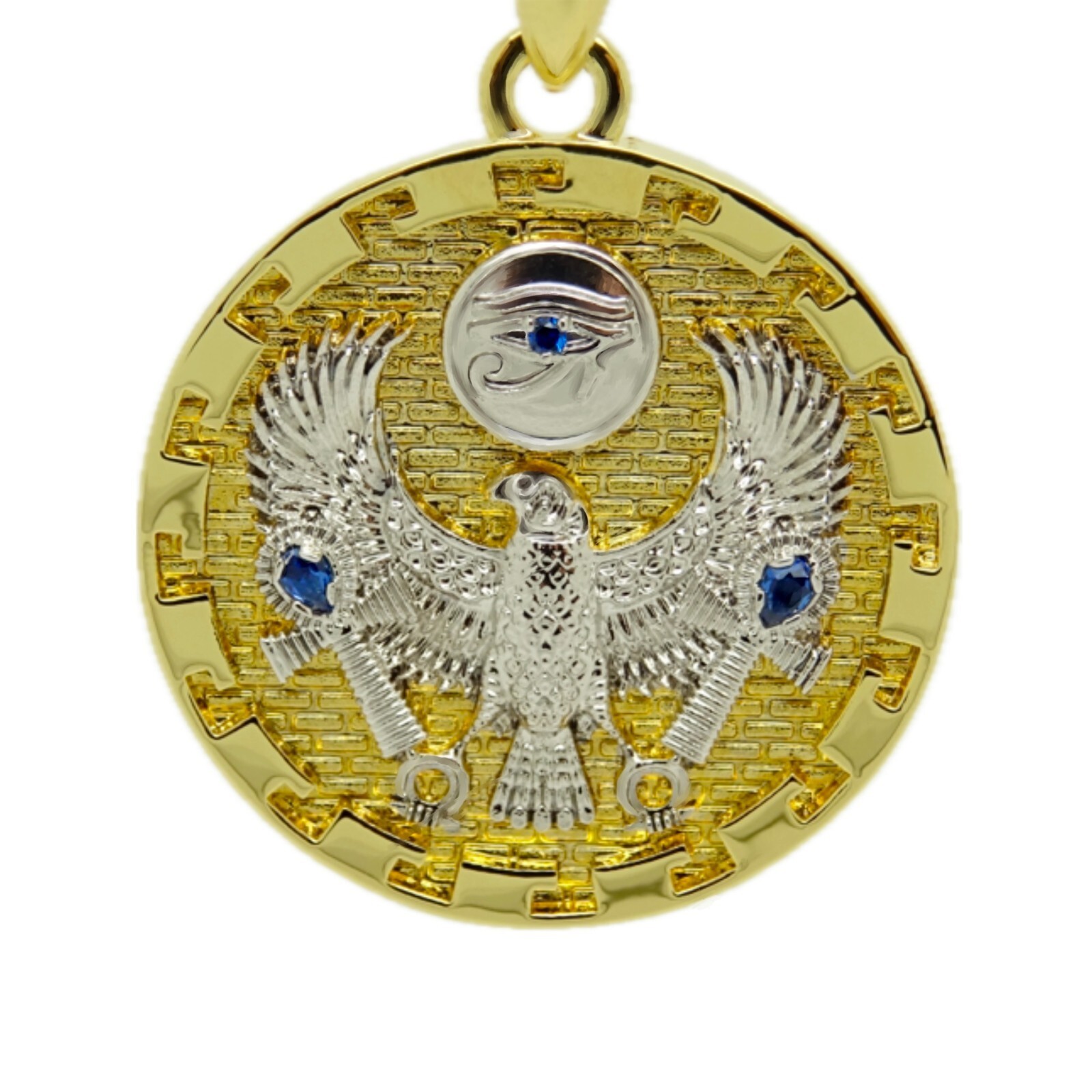 Embellished with deep blue stones on the cross and in the Eye of Horus.