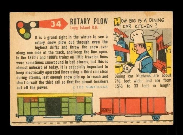 1955 Rails & Sails TOPPS Trading Card #34 Rotary Plow Long Island Railroad