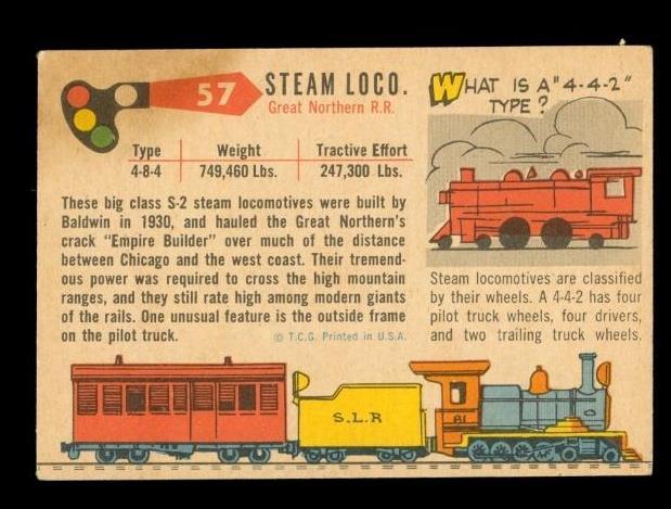 1955 Rails & Sails TOPPS Trading Card #57 Steam Locomotive Great Northern RR