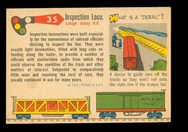 1955 Rails Sails TOPPS Trading Card #35 Inspection Engine Lehigh Valley RR. Raw and Ungraded. No smoke or pet odor.