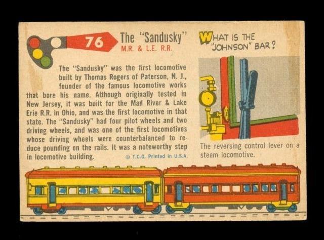 1955 Rails & Sails TOPPS Trading Card #76 Sandusky Mad River Lake Erie Railroad
