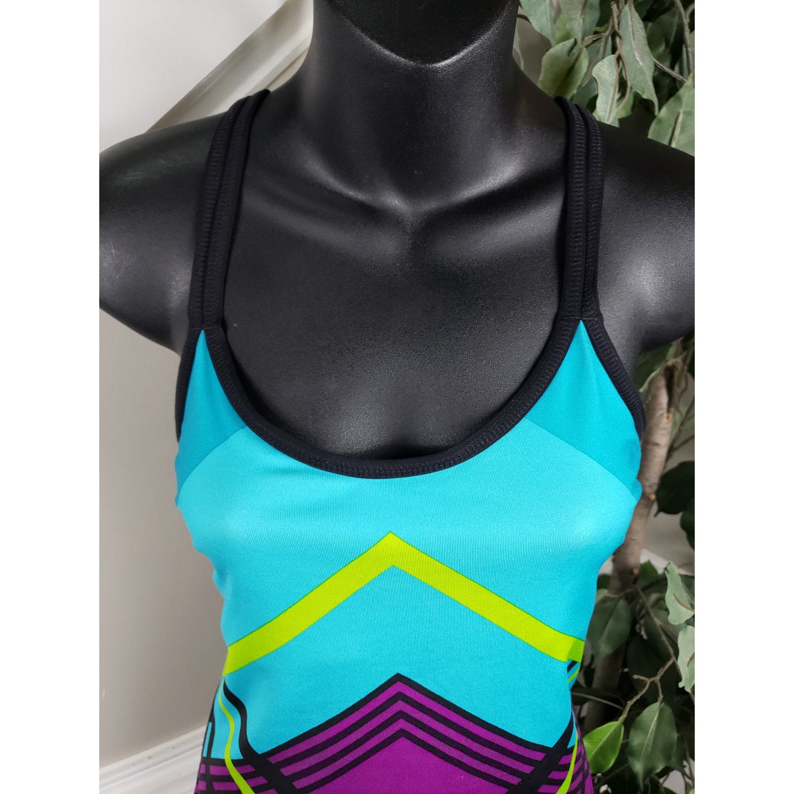 Xersion Tank Top Women M Turquoise Pink Yellow Geometric Print Racerback