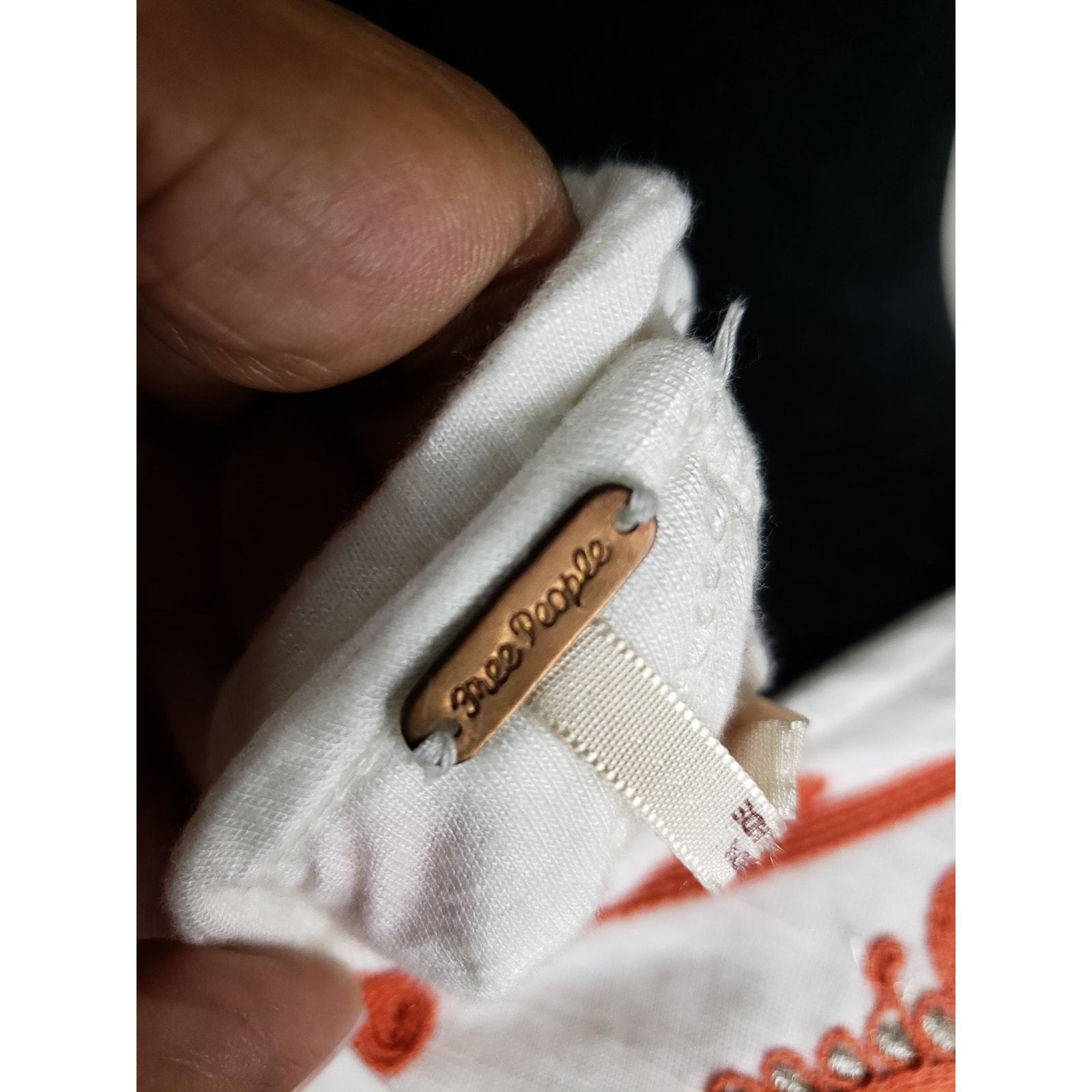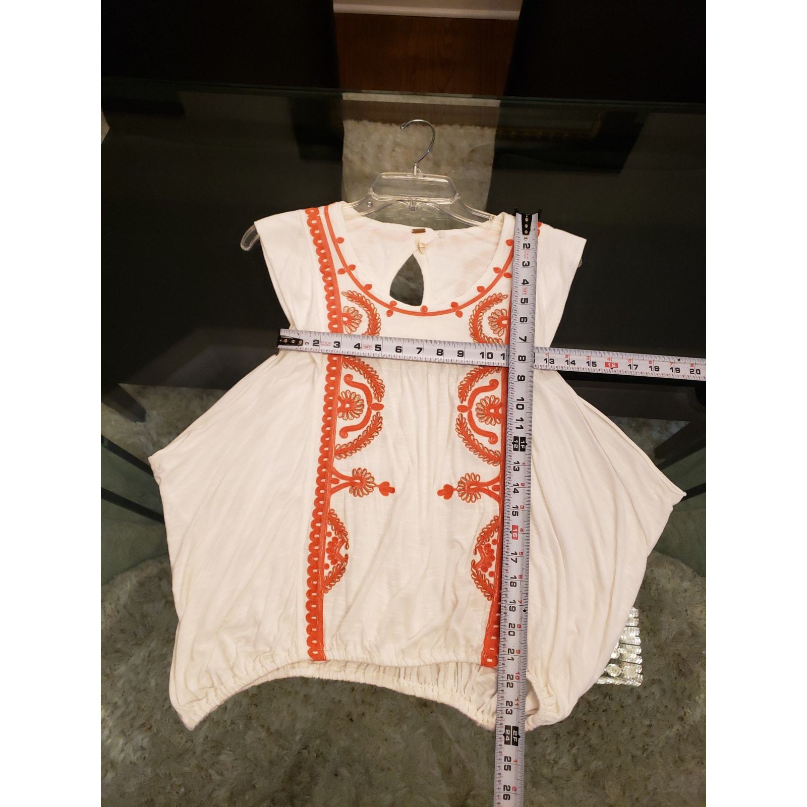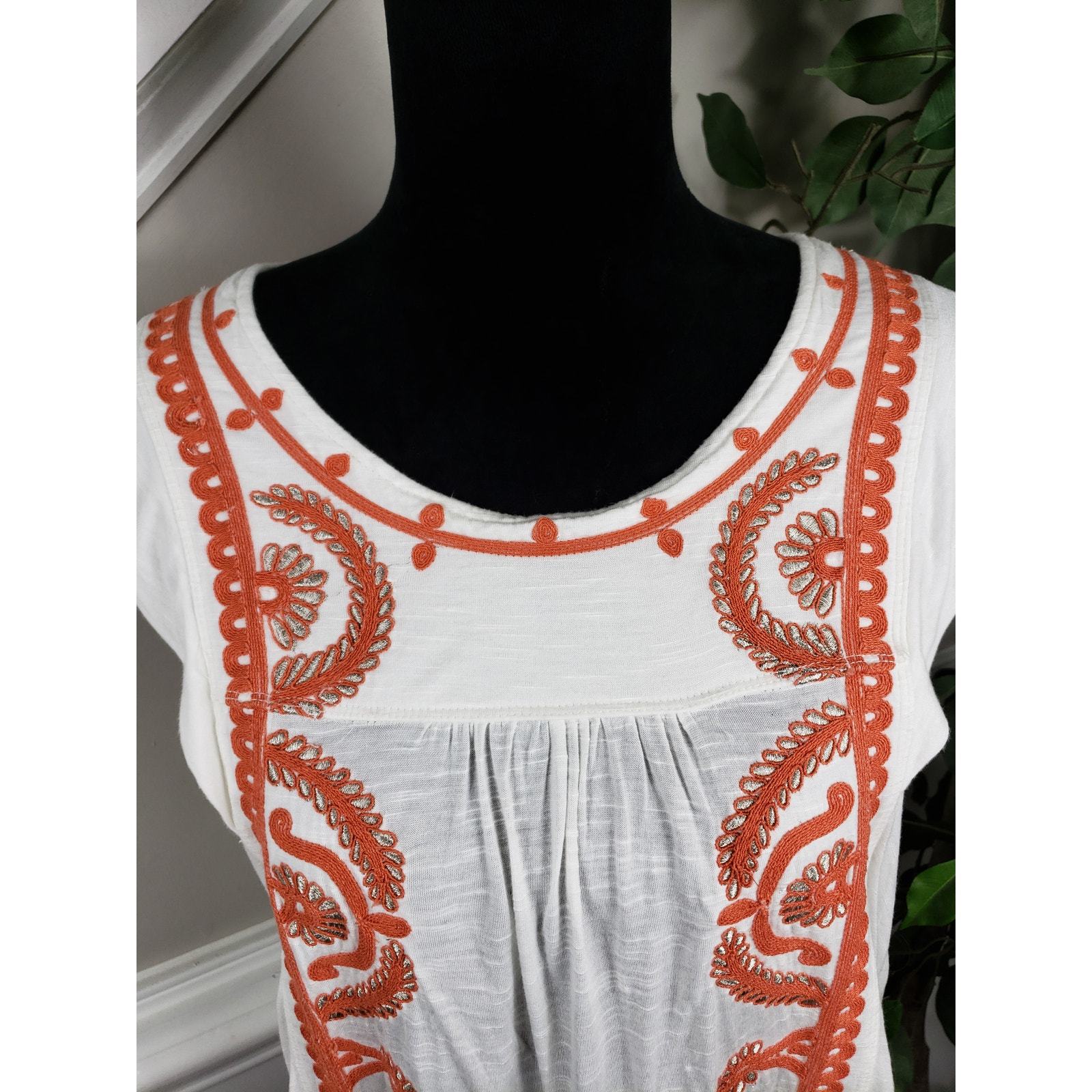 Free People Top Women XS White Orange Embroidered Boho Keyhole Cotton