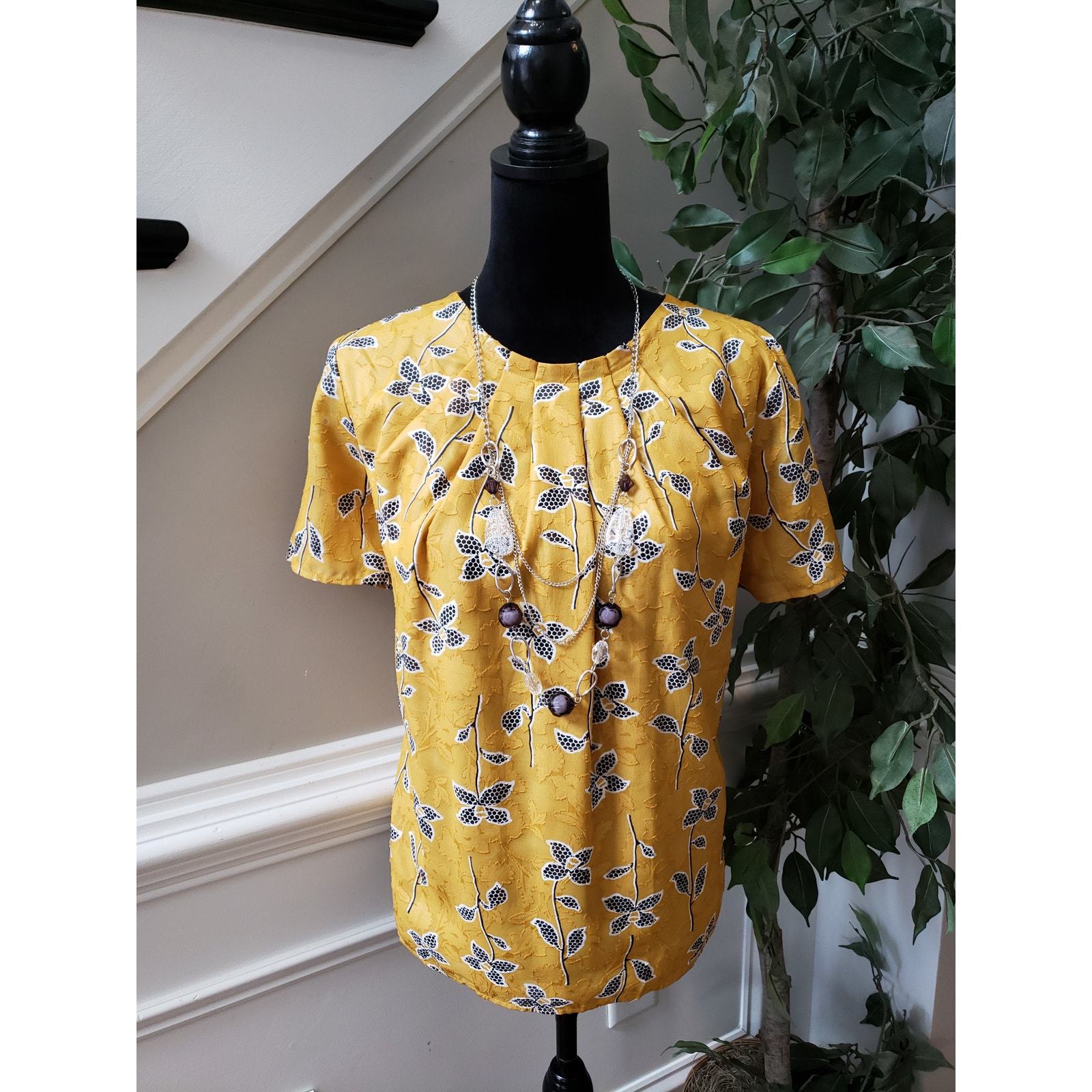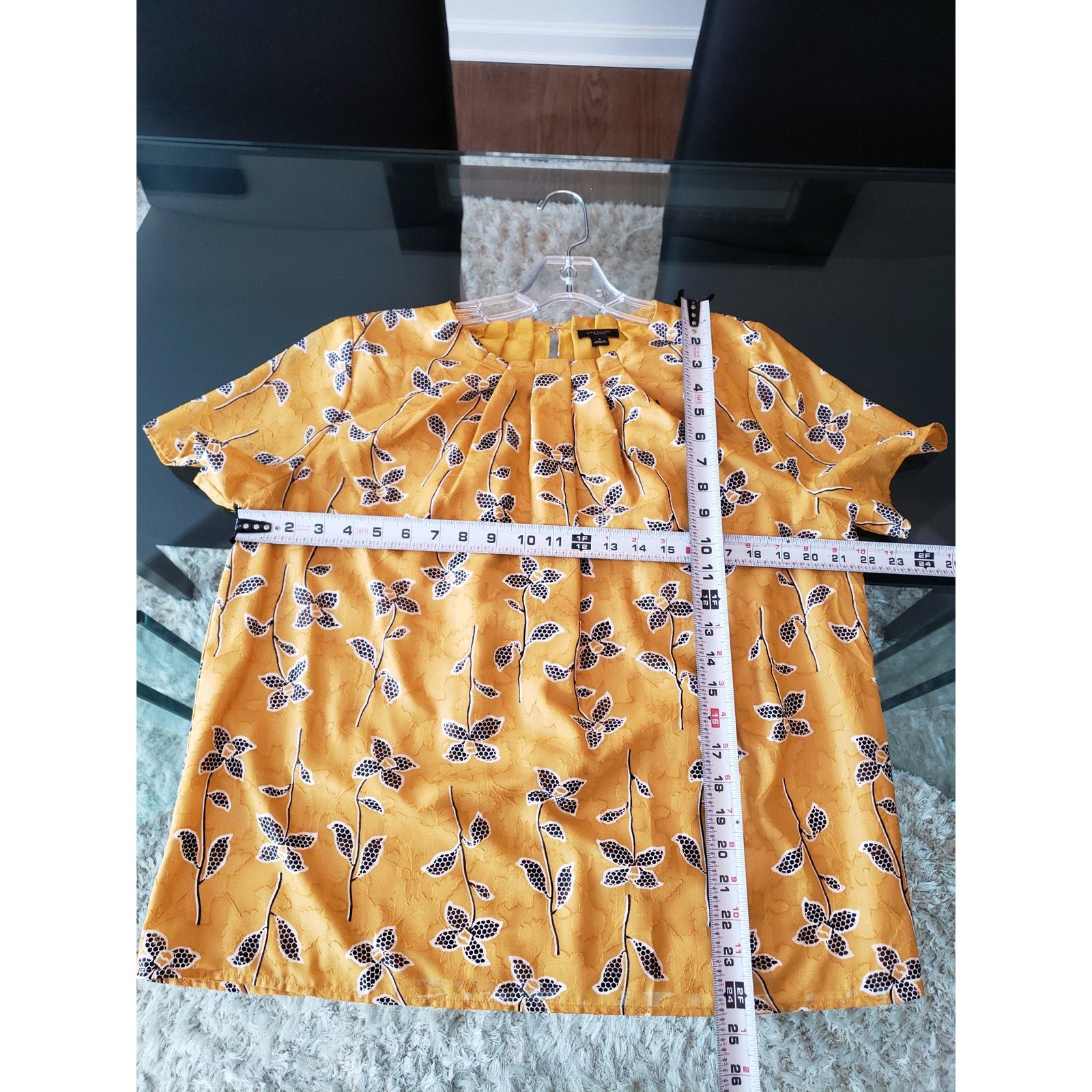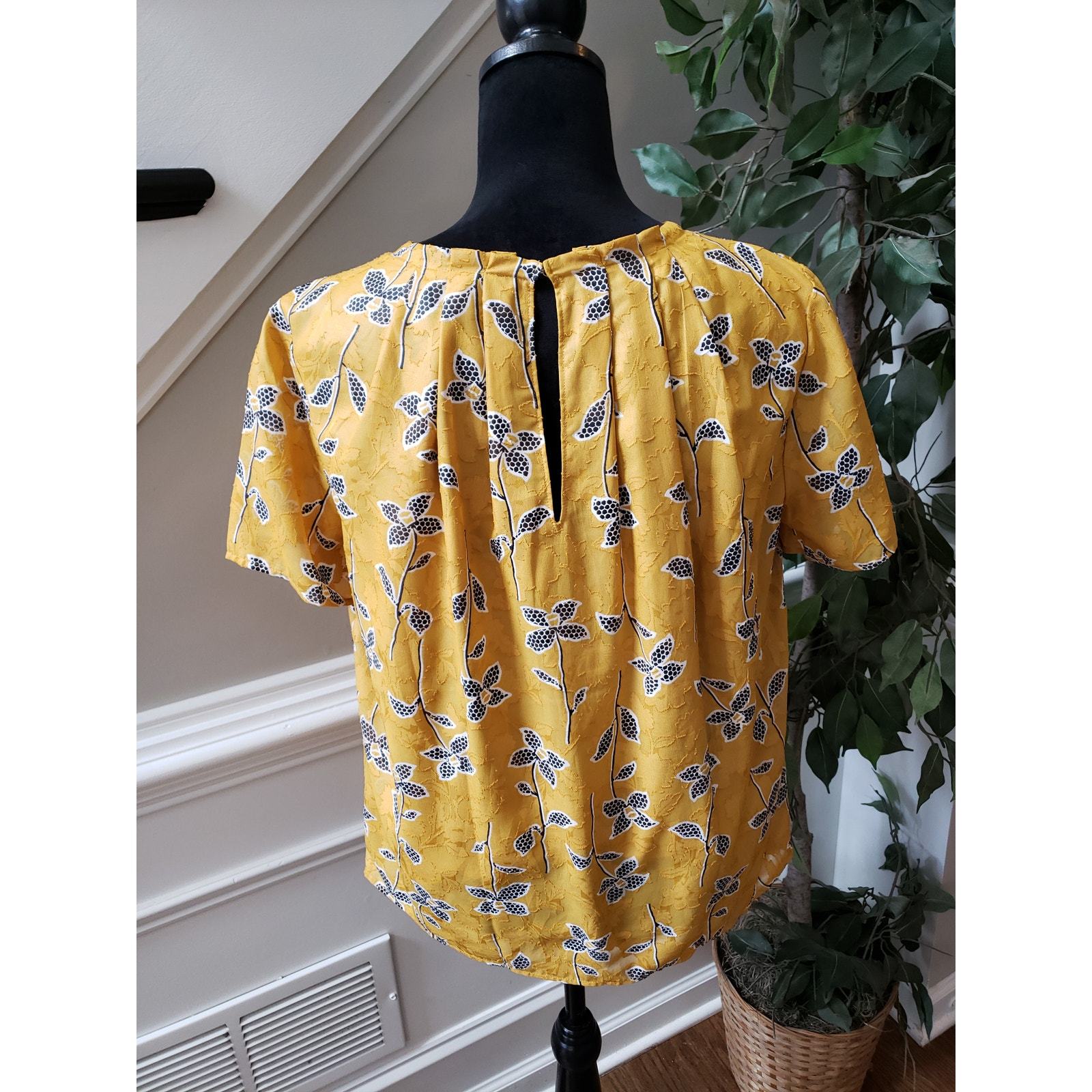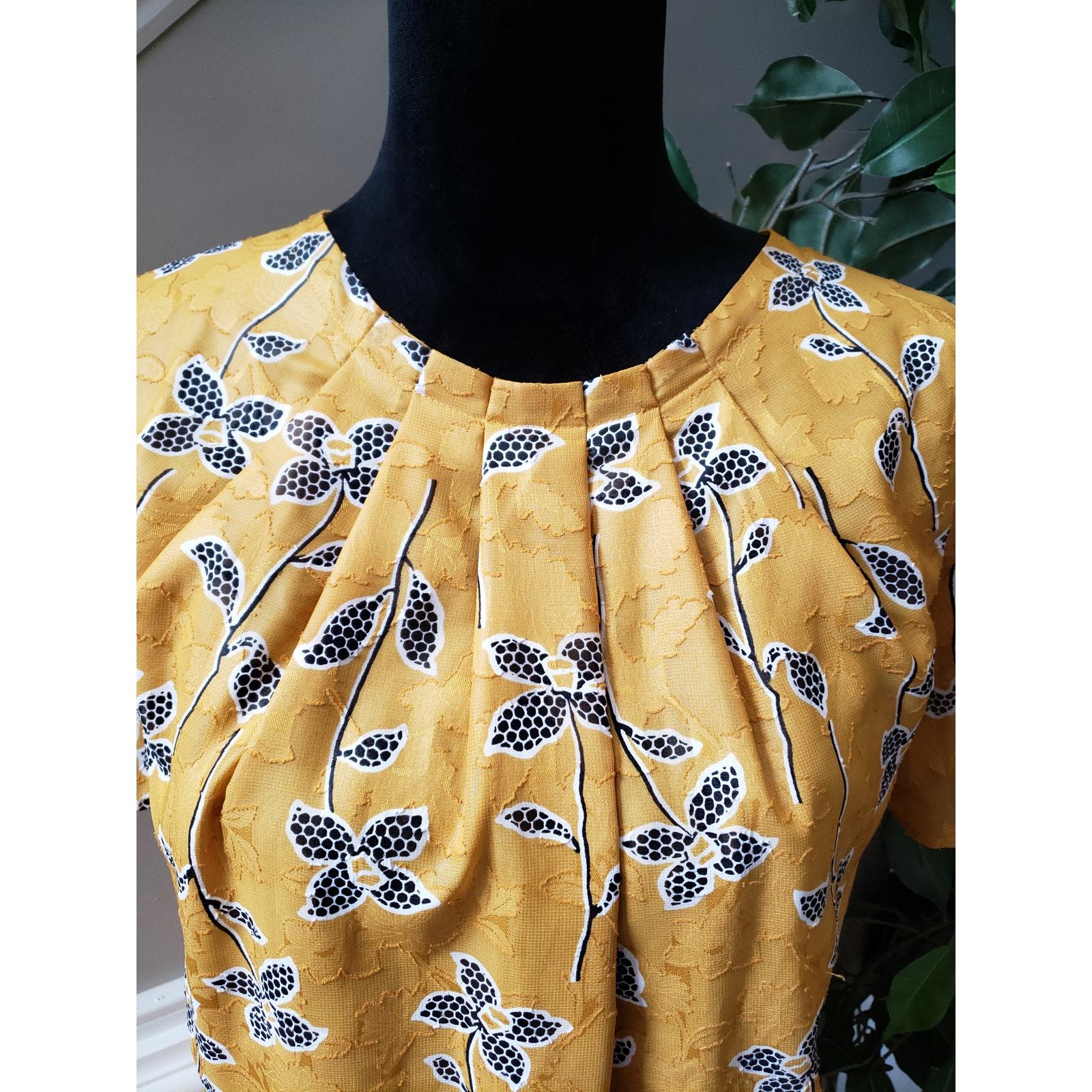 Brighten your look with this cheerful yellow floral blouse from Ann Taylor Factory. Featuring a pleated neckline, soft lining, and short sleeves, this top is perfect for work or weekend wear. The lightweight polyester fabric ensures comfort while the floral print adds a touch of playful elegance.