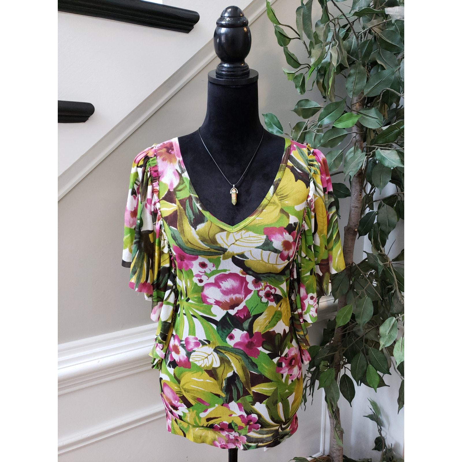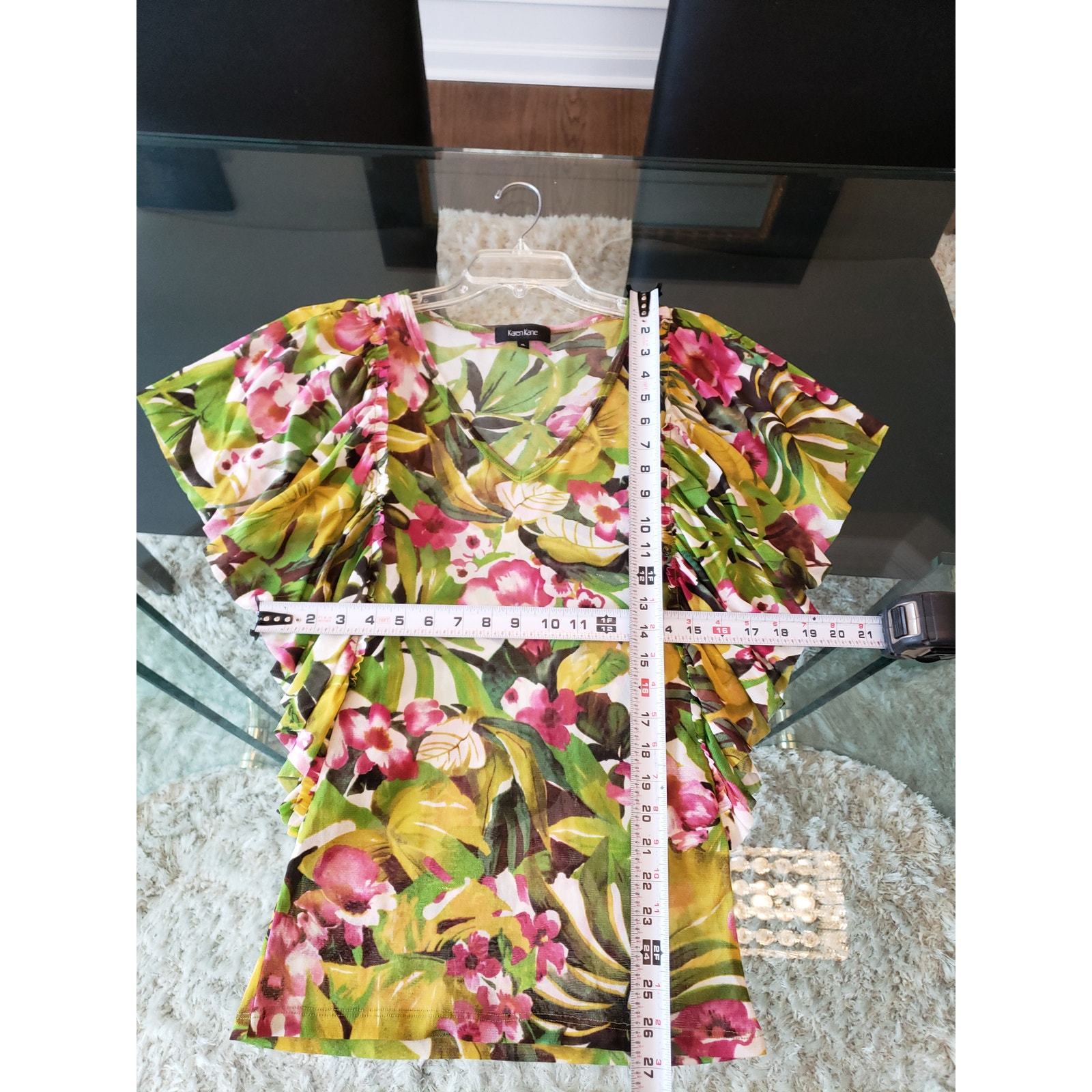 Karen Kane Blouse Women's XL Multicolor Floral Print Ruched Sleeve Stretch Top