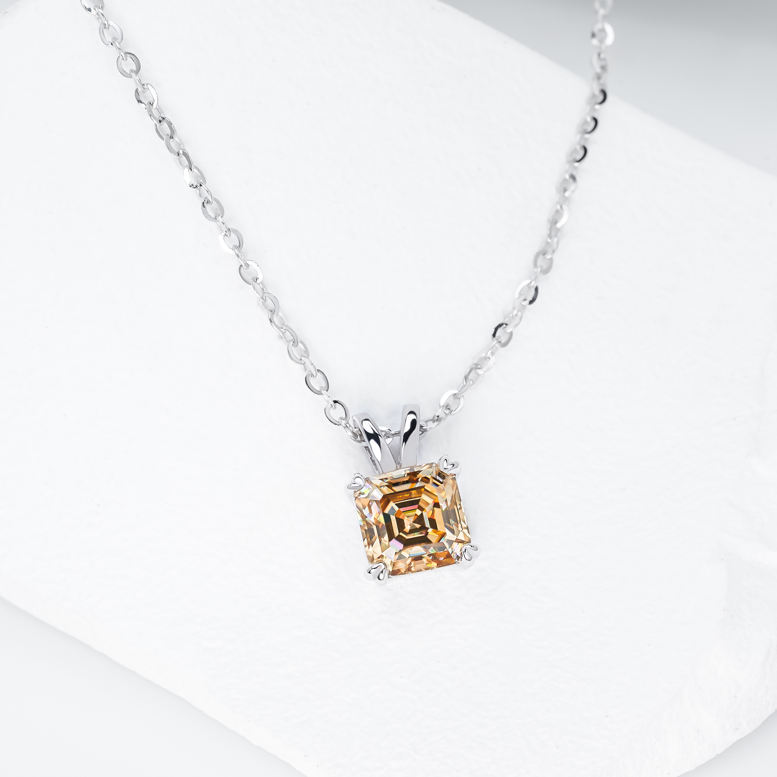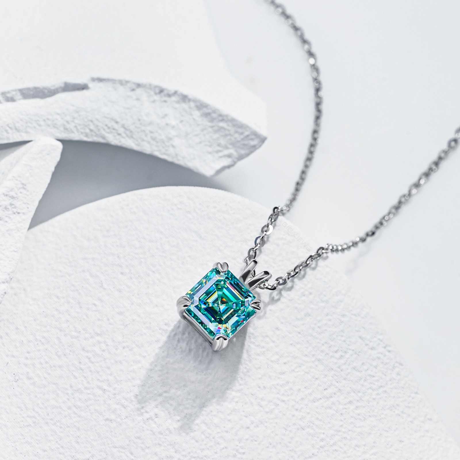 Product Name: GIGAJEWE 7mm 2.0ct 925 Sterling Silver Necklace Asscher Cut Blue Green Color Moissanite Necklace , Silver Necklace
