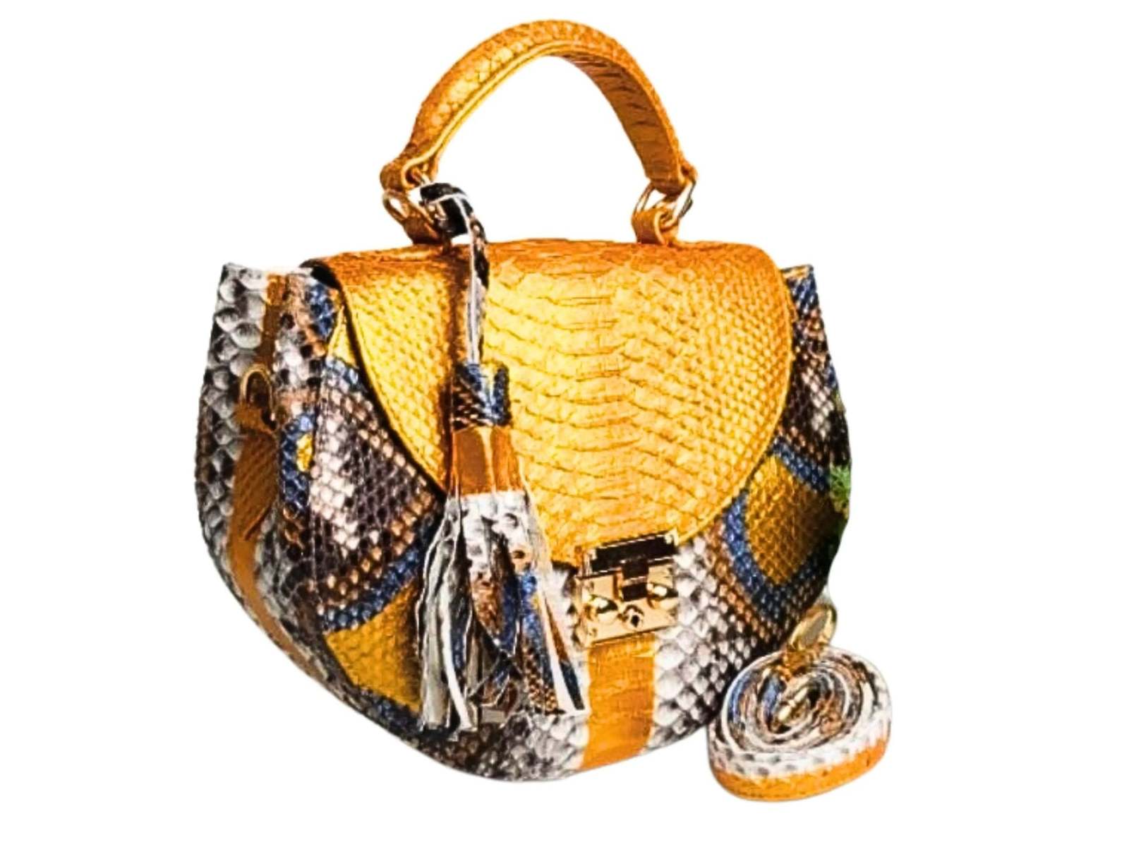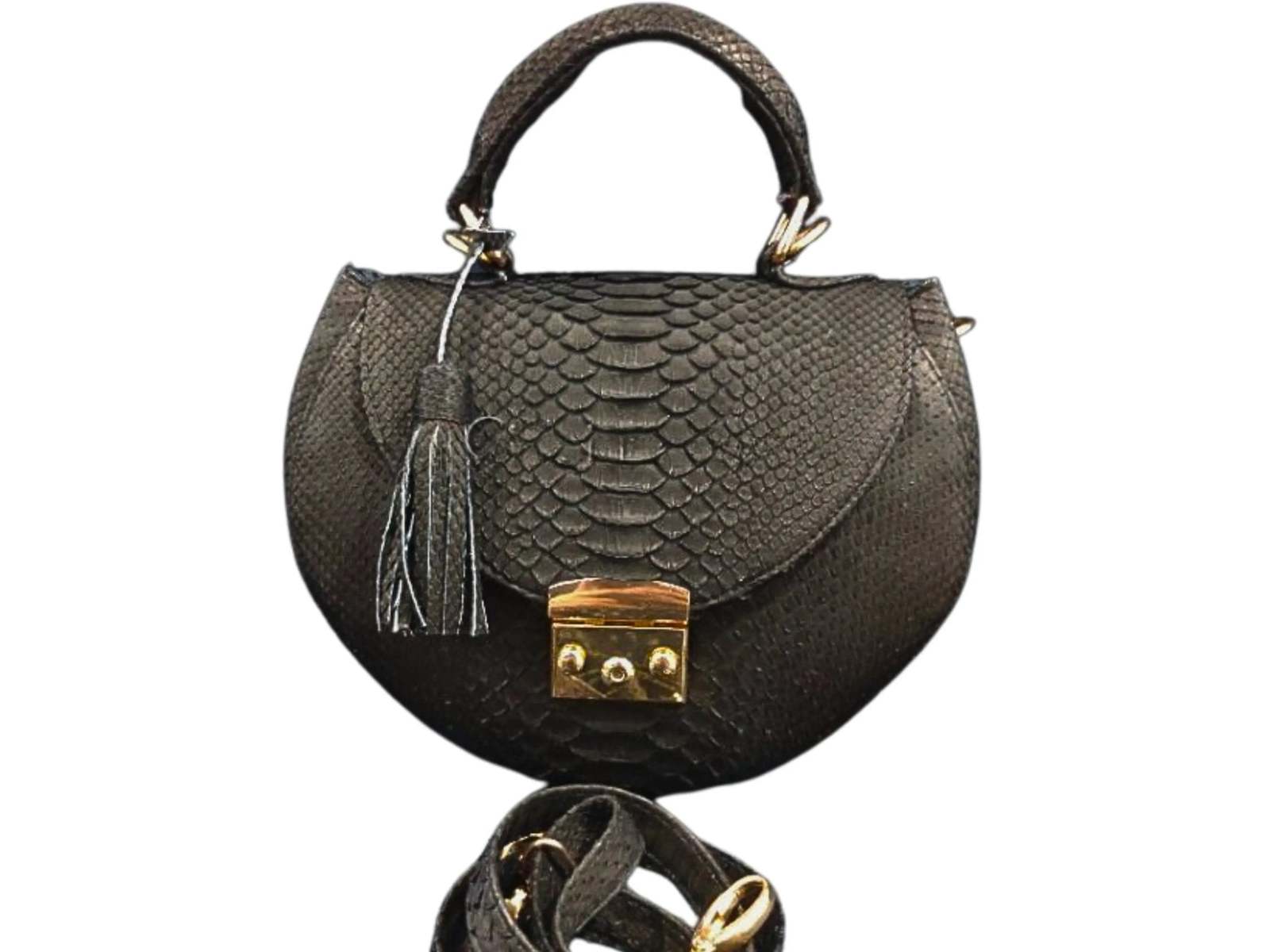 Oval Snakeskin Satchel Handbag combines practicality with luxurious style. Made with genuine snakeskin, it's durable and timeless. The oval shape adds a unique touch, while the satchel design allows for convenient storage and easy access. Elevate any outfit with this statement piece.