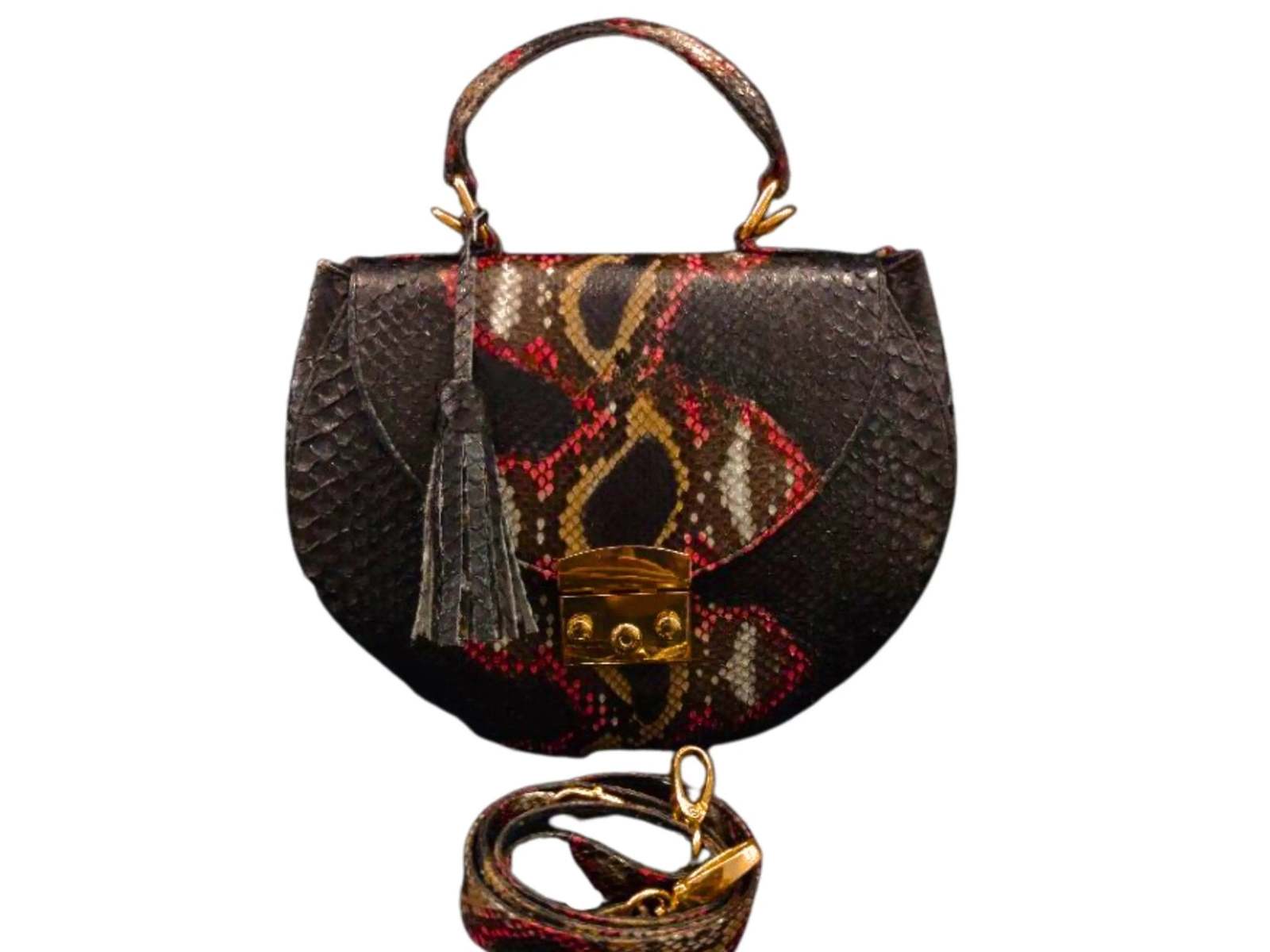 STYLE - A simple design of satchel snakeskin purses and leather strap.