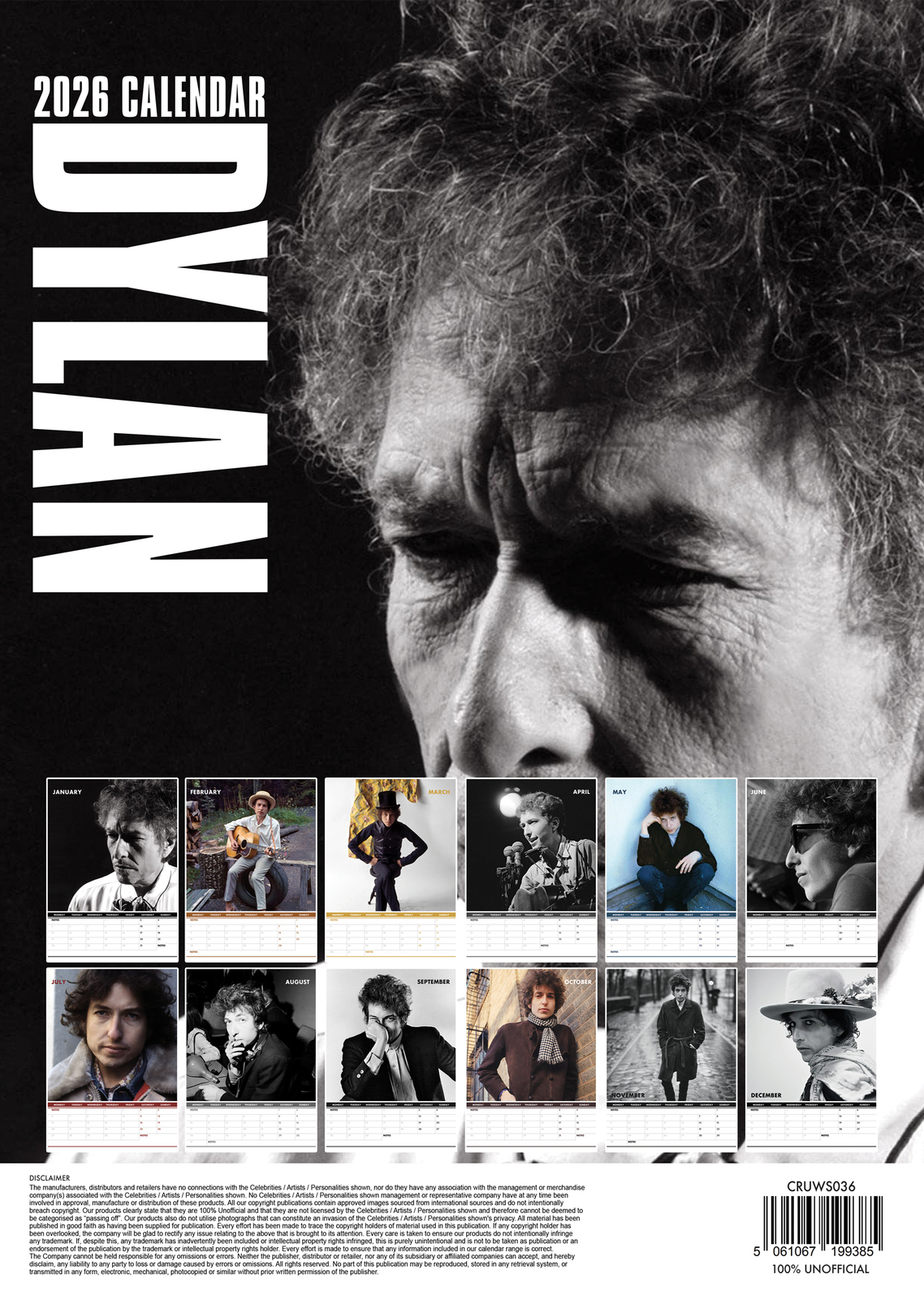 The Bob Dylan Calendar 2026 is a paper calendar published in the United Kingdom. It features a unique design inspired by the legendary musician Bob Dylan, making it a collector's item for fans of his work. This calendar serves as a stylish and practical way for users to keep track of important dates and events in a visually engaging manner.