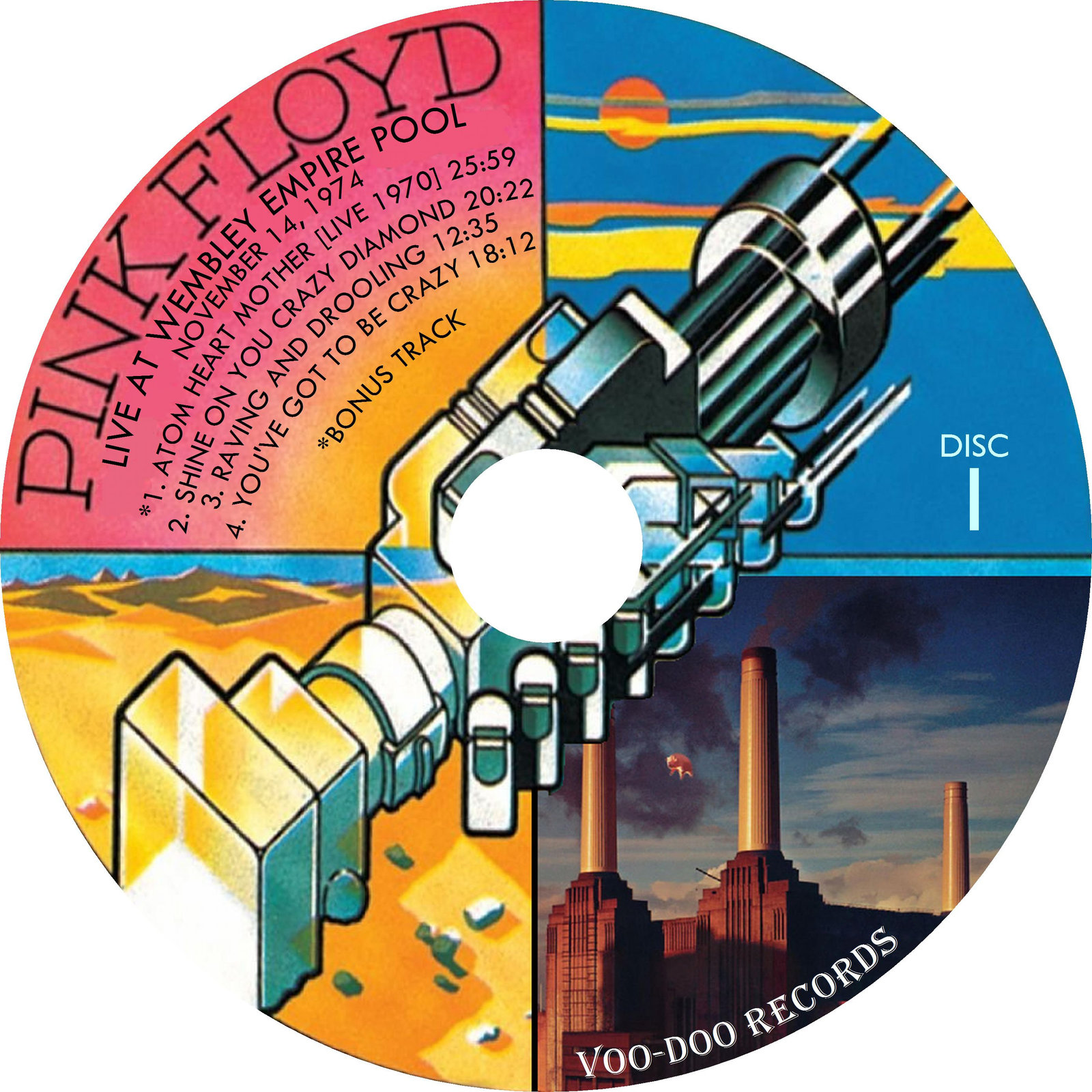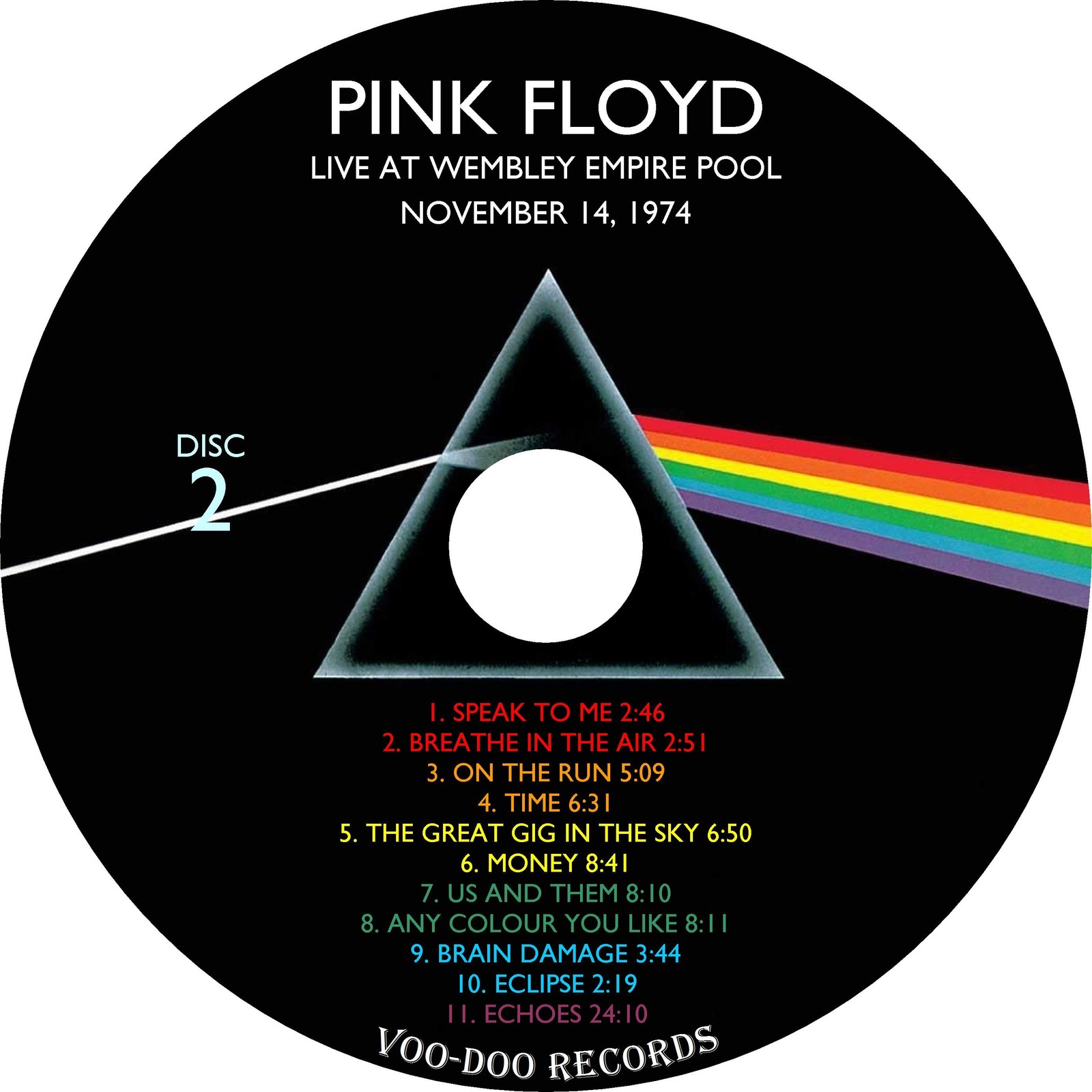 Incredible fan-made set with full color artwork/disc art. Complete show in perfect sound quality. Contains the complete concert from Wembley Empire Pool in 1974 (including the Dark Side Of The Moon album played in full) along with a bonus performance of Atom Heart Mother from 1970. Condition is "Like New". Shipped with USPS Media Mail.