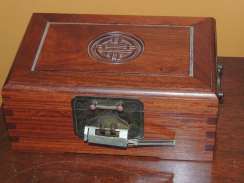 Chinese Classical Rosewood Brass Velvet Art Jewelry Case Trinket Box Wooden Asia