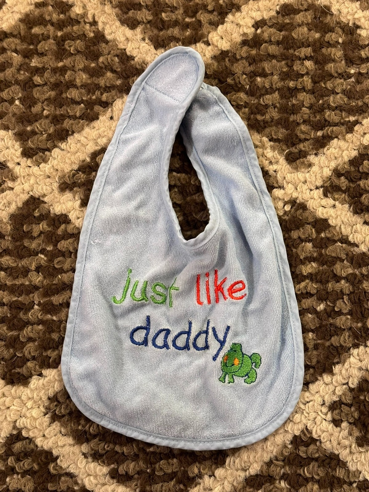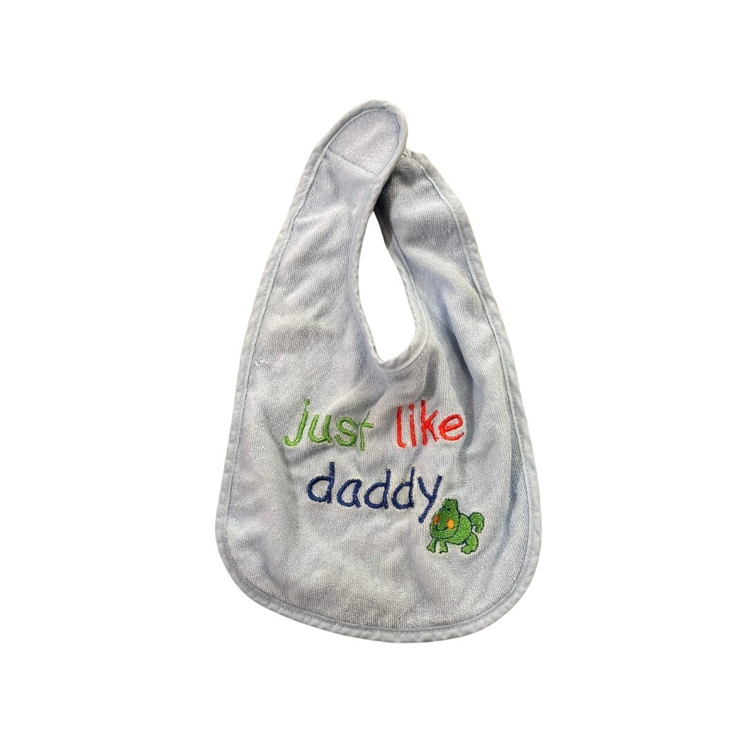 Infant Bib Light Blue "Just Like Daddy" Embroidered Frog Terry Cloth