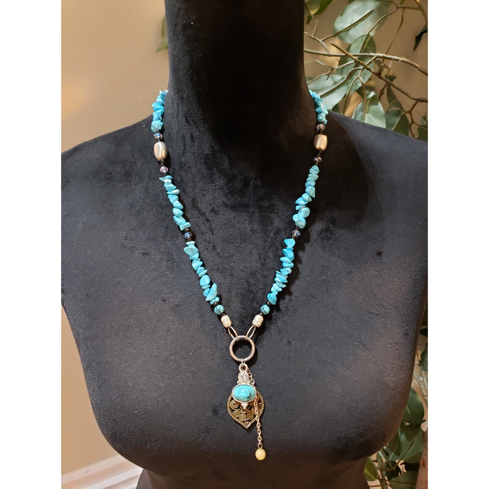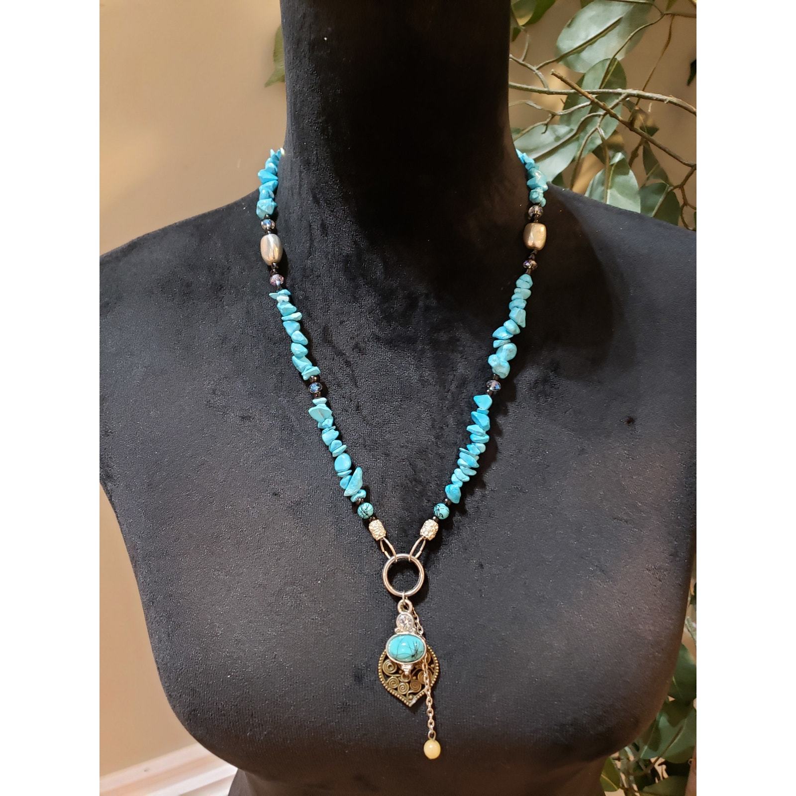 Womens Turquoise Stone Beads Filigree Lariat and similar items