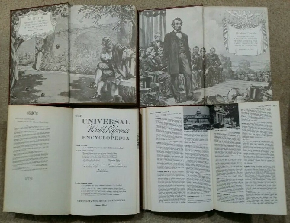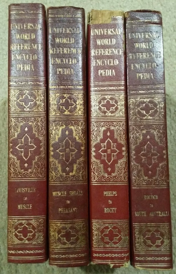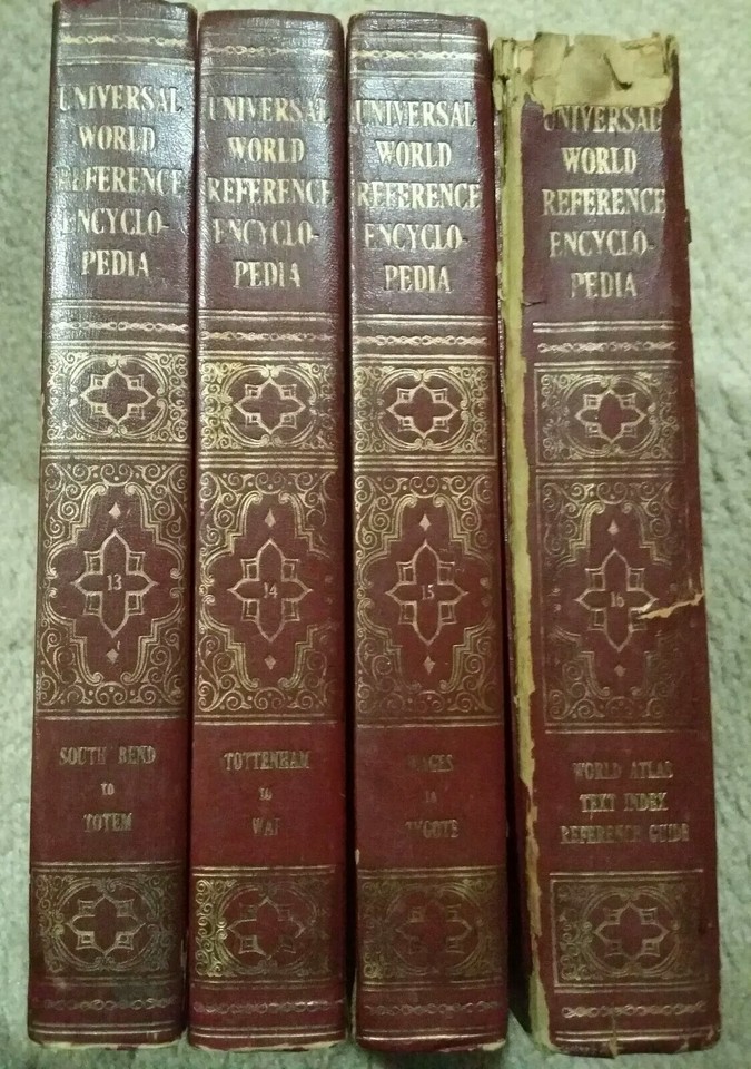 This is a listing for the pre-owned, heavily used historical vintage 1968 The Universal World Reference Encyclopedia 16 volume set including the World Atlas Reference Guide in fair condition as pictured.