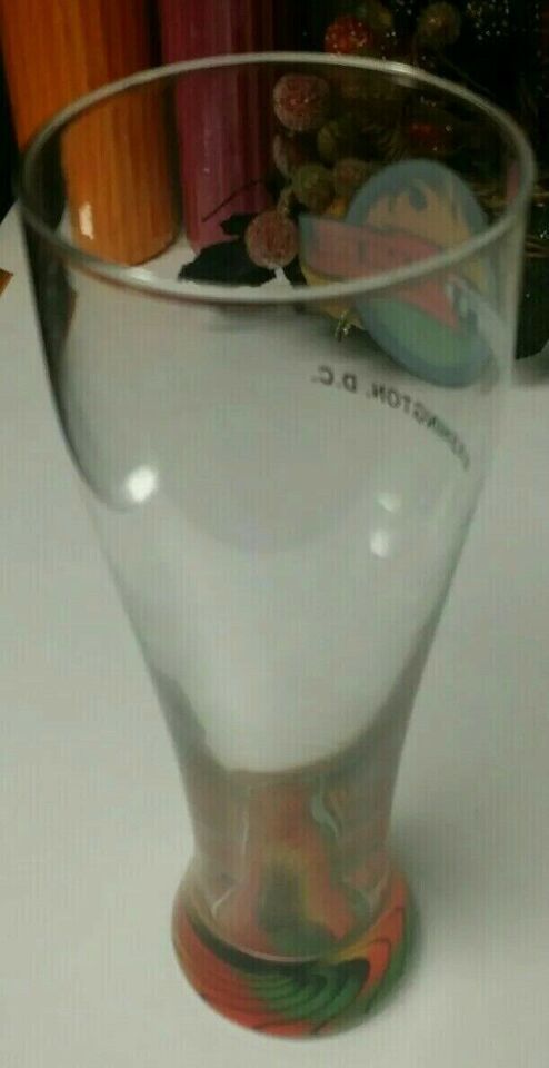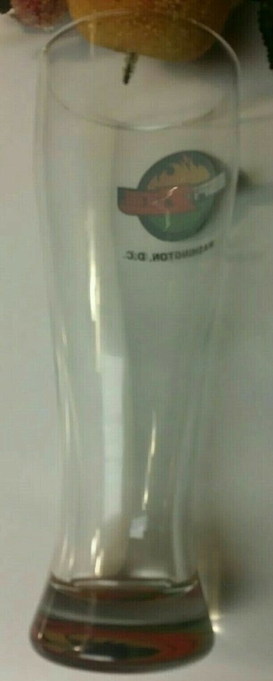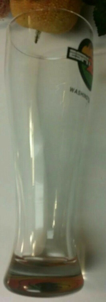 This is a listing for a pre-owned ESPN Zone Washington, D.C. Tall Glass Sports Bar Heavyweight Pilsner Beer Glass 9 inches in height. No chips or cracks as pictured. This has never been used as a drinking glass, only sat on display as a collectible. The glass is listed as used but has only been on display and never actually used.