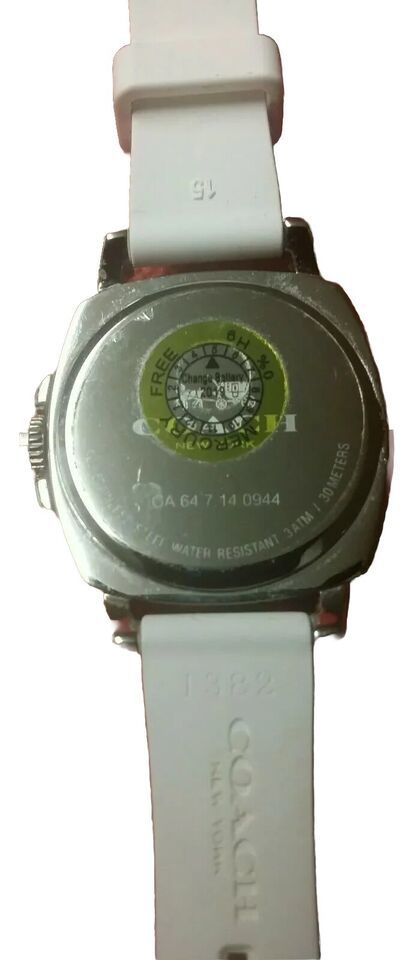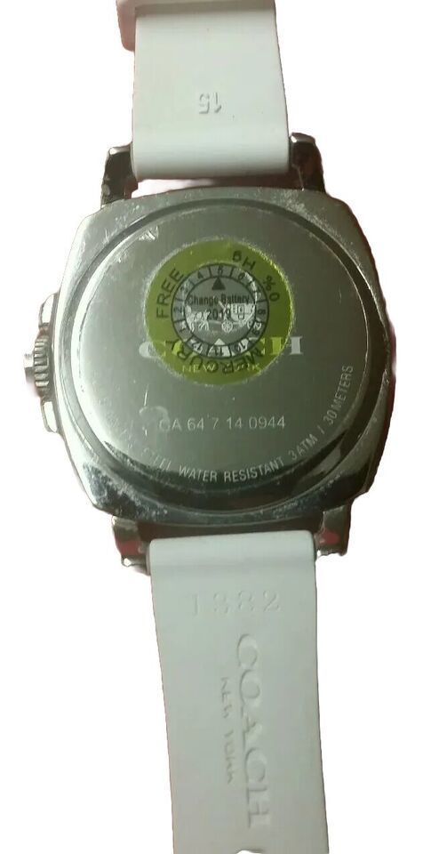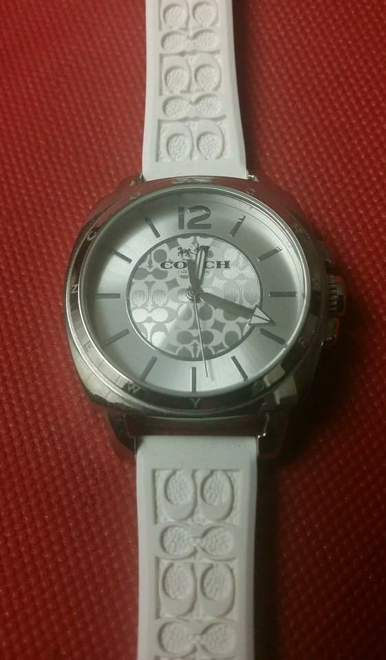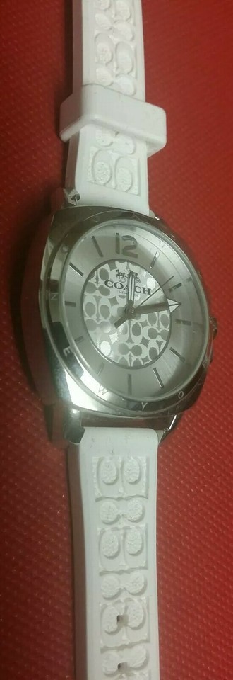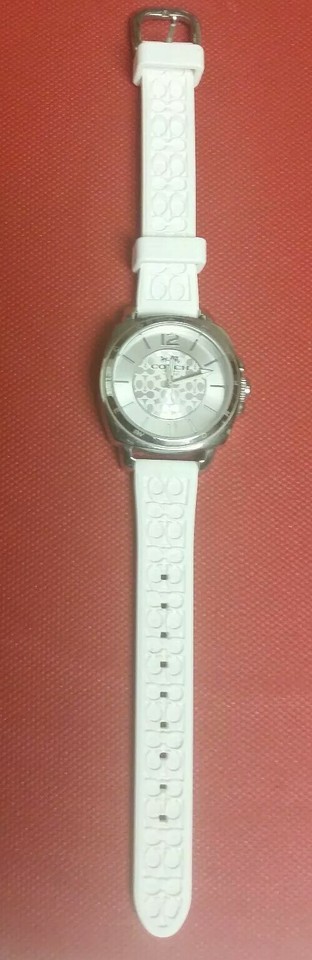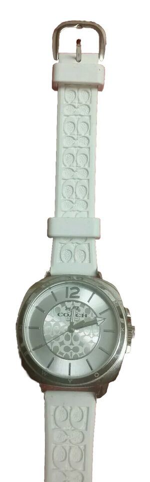 》 Coach Ladies White Embossed Signature C Logo Boyfriend Watch》NEEDS BATTERY