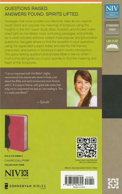 With over one million copies sold, the NIV Quest Study Bible is designed for inquisitive readers who desire solid answers to their many questions. With thousands of notes and hundreds of articles by today's most trusted scholars, this unique Bible addresses the common, uncommon, and perplexing questions people ask about Scripture.